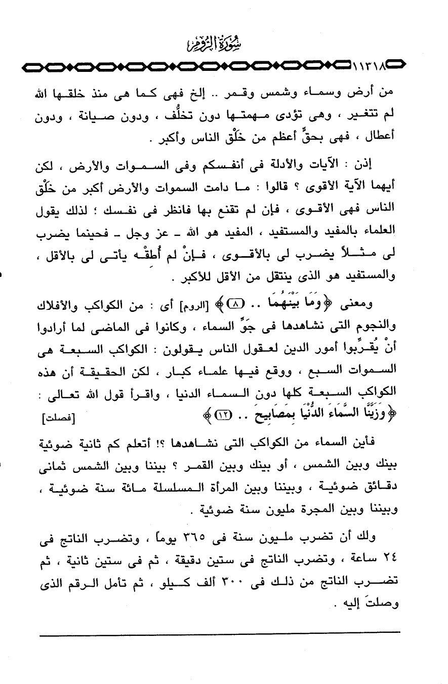 ولك أن تضرب مليون سنة في 365يوماً، وتضرب الناتج في 24 ساعة، وتضرب الناتج في ستين دقيقة، ثم في ستين ثانية، ثم تضرب الناتج من ذلك في 300 ألف كيلو، ثم تأمل الرقم الذي وصلتَ إليه.