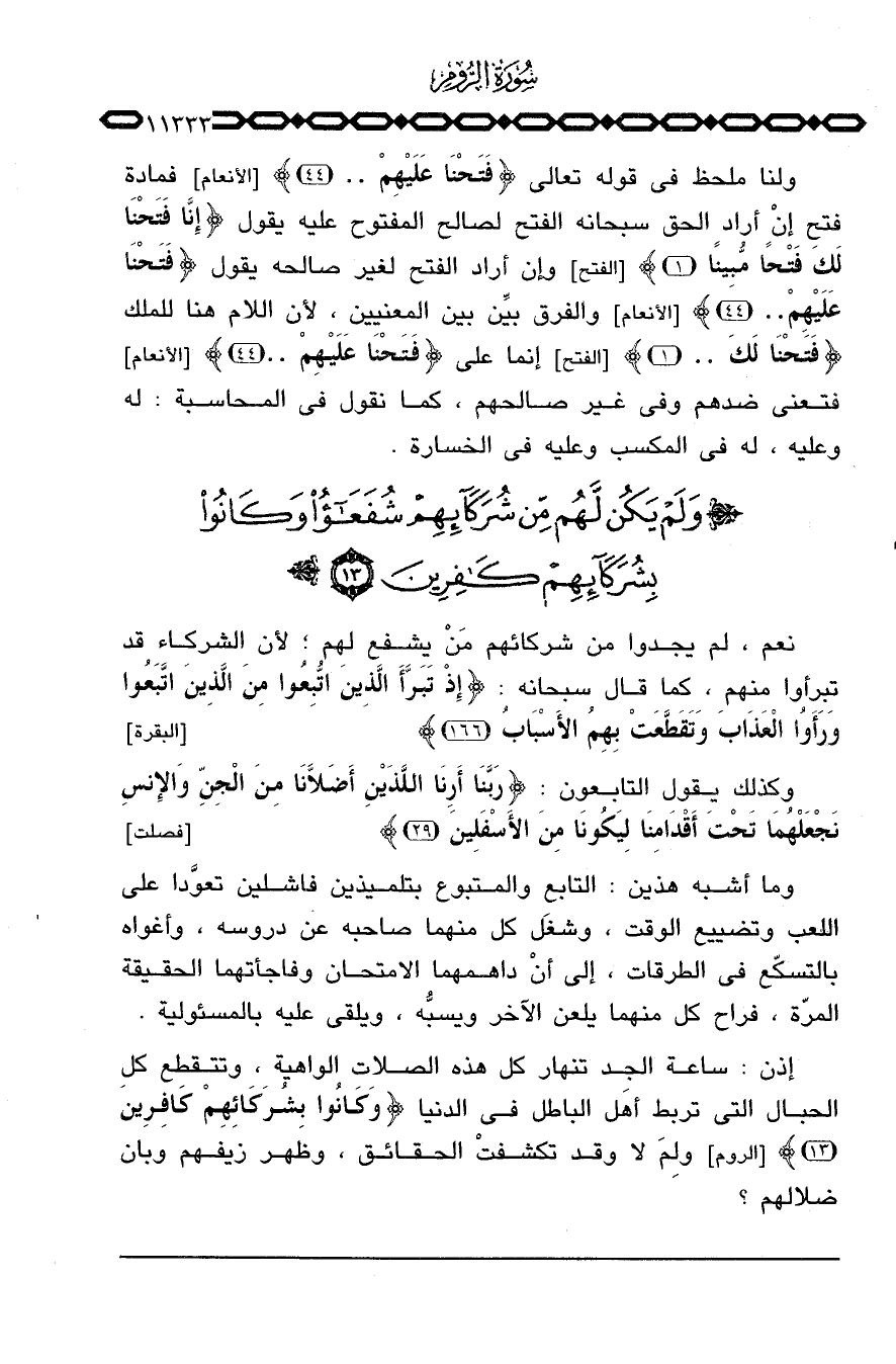 وما أشبه هذين: التابع والمتبوع بتلميذين فاشلين تعوَّدا على اللعب وتضييع الوقت، وشغَل كل منهما صاحبه عن دروسه، وأغواه بالتسكّع في الطرقات، إلى أنْ داهمهما الامتحان وفاجأتهما الحقيقة المرّة، فراح كل منهما يلعن الآخر ويسبُّه، ويلقي عليه بالمسئولية.