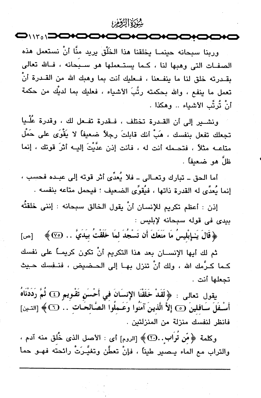 يقول تعالى: {لَقَدْ خَلَقْنَا الإنسان في أَحْسَنِ تَقْوِيمٍ ثُمَّ رَدَدْنَاهُ أَسْفَلَ سَافِلِينَ إِلاَّ الذين آمَنُواْ وَعَمِلُواْ الصالحات ... } [التين: 4 - 5] فانظر لنفسك منزلة من المنزلتين.