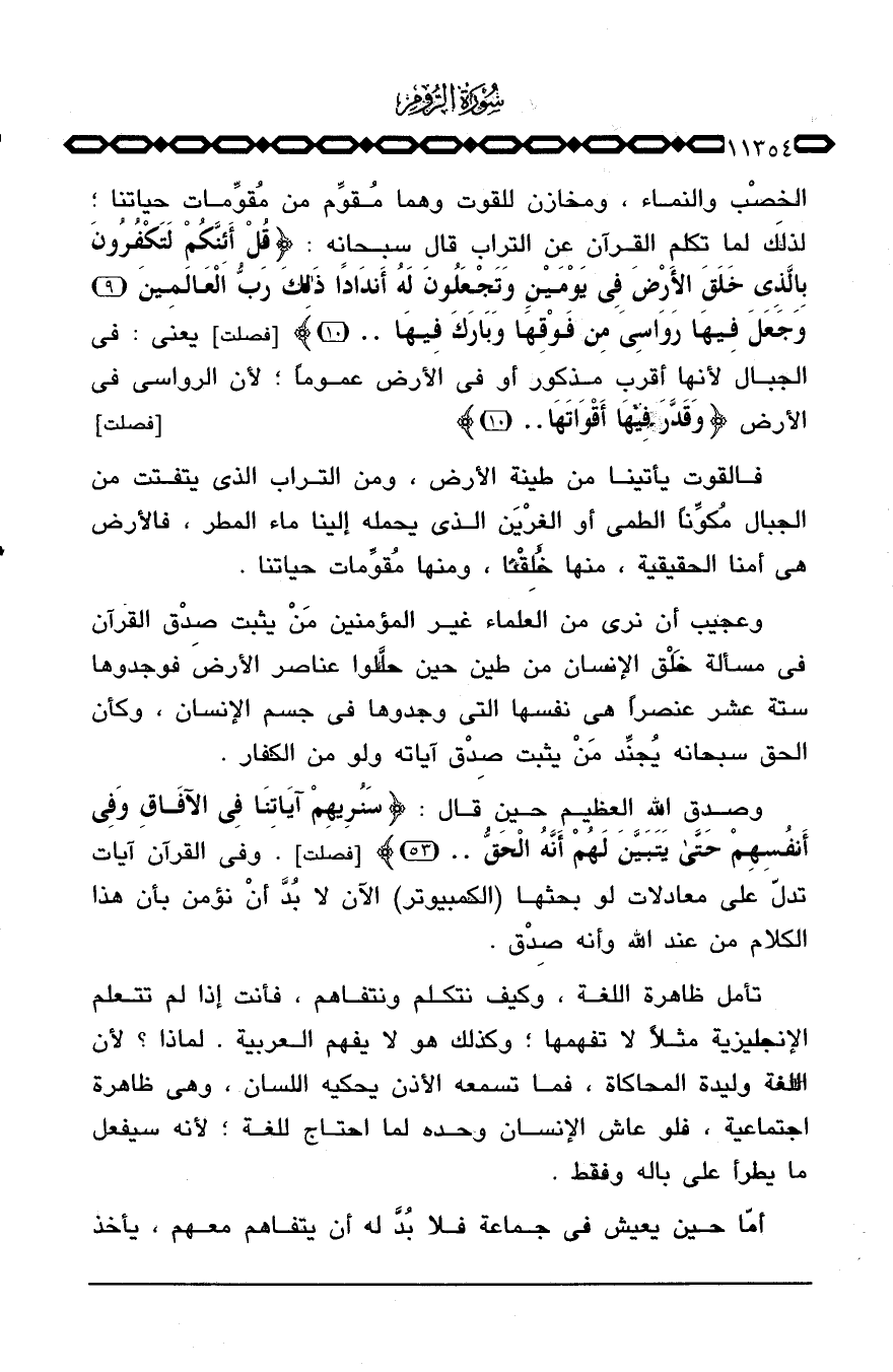 وصدق الله العظيم حين قال: {سَنُرِيهِمْ آيَاتِنَا فِي الآفاق وفي أَنفُسِهِمْ حتى يَتَبَيَّنَ لَهُمْ أَنَّهُ الحق ... } [فصلت: 53] . وفي القرآن آيات تدلّ على معادلات لو بحثها (الكمبيوتر) الآن لا بُدَّ أن نؤمن بأن هذا الكلام من عند الله وأنه صِدْق.