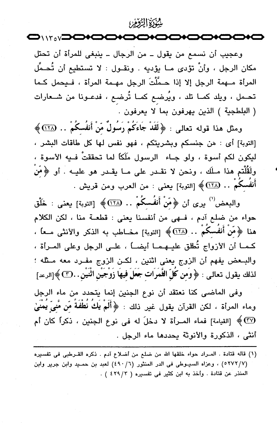 والبعض يرى أن {مِّنْ أَنفُسِكُمْ ... } [التوبة: 128] يعني: خَلْق حواء من ضلع آدم، فهي من أنفسنا يعني: قطعة منا، لكن الكلام هنا