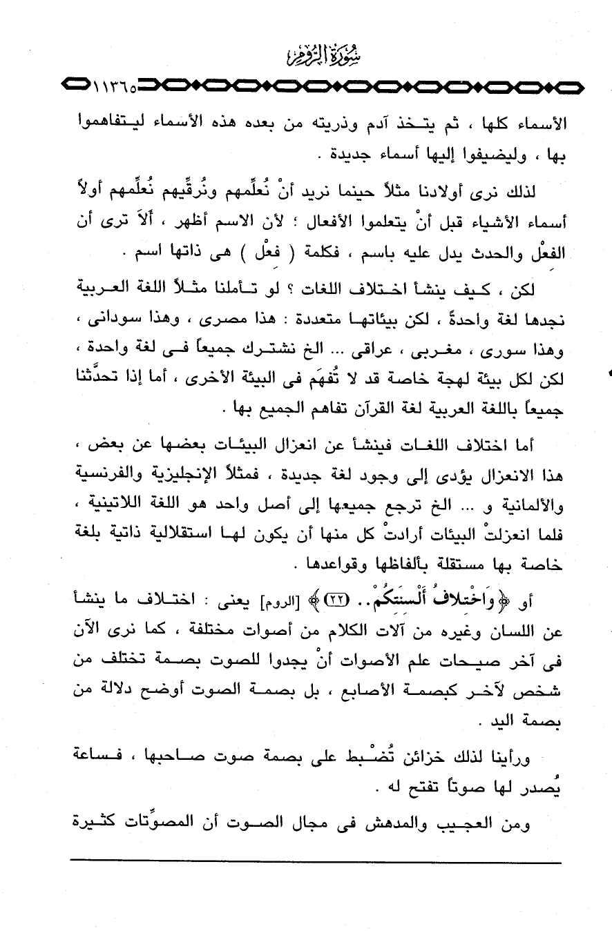 لكن، كيف ينشأ اختلاف اللغات؟ لو تأملنا مثلاً اللغة العربية نجدها لغة واحدةً، لكن بيئاتها متعددة: هذا مصري، وهذا سوداني، وهذا سوري، مغربي، عراقي. . الخ نشترك جميعاً في لغة واحدة، لكن لكل بيئة لهجة خاصة قد لا تُفهَم في البيئة الأخرى، أما إذا تحدَّثنا جميعاً باللغة العربية لغة القرآن تفاهم الجميع بها.