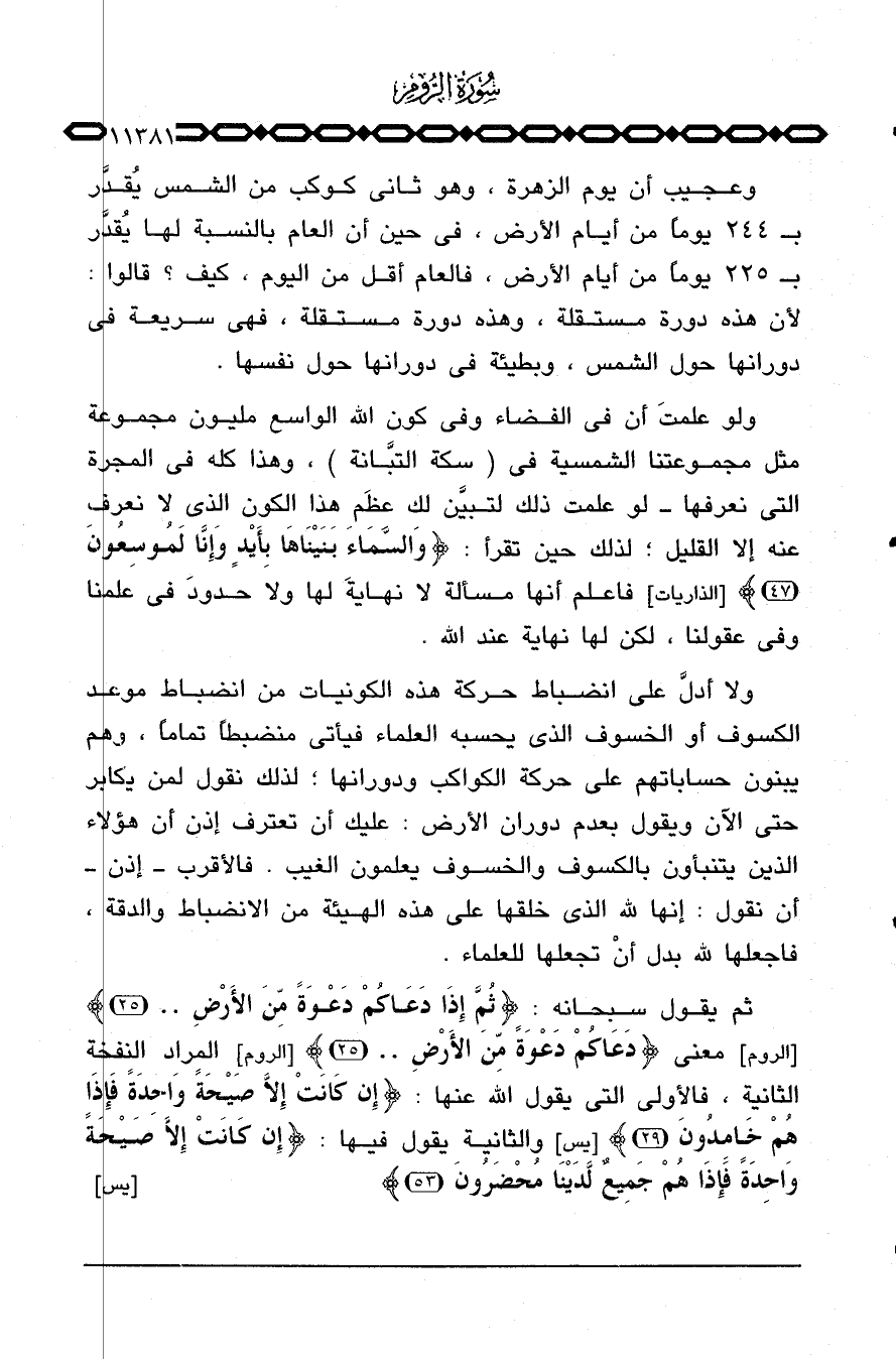 ولو علمتَ أن في الفضاء وفي كون الله الواسع مليون مجموعة مثل مجموعتنا الشمسية في (سكة التبَّانة) ، وهذا كله في المجرة التي نعرفها - لو علمت ذلك لتبيَّن لك عظَم هذا الكون الذي لا نعرف عنه إلا القليل؛ لذلك حين تقرأ: