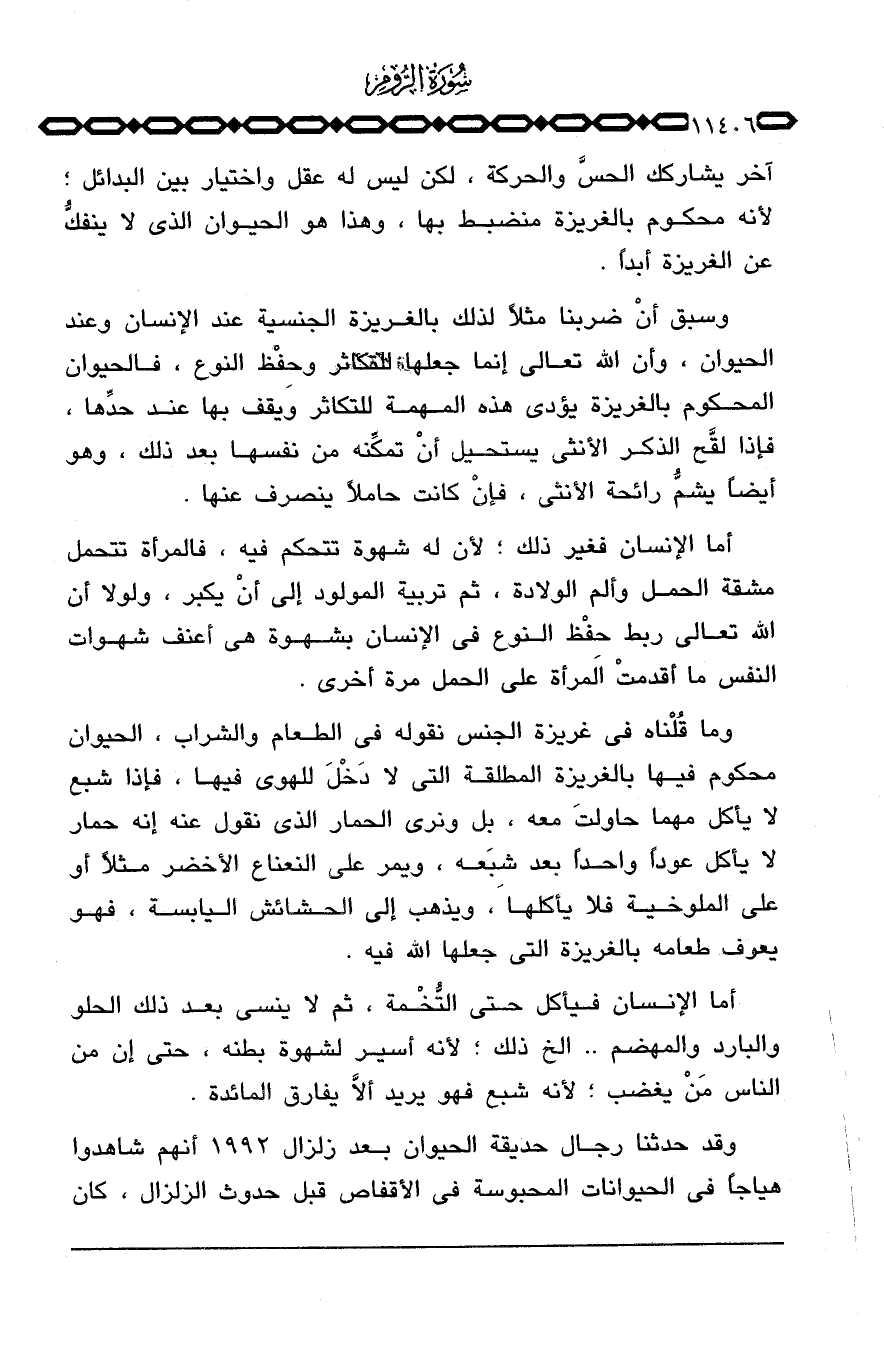 آخر يشاركك الحسَّ والحركة، لكن ليس له عقل واختيار بين البدائل؛ لأنه محكوم بالغريزة منضبط بها، وهذا هو الحيوان الذي لا ينفكُّ عن الغريزة أبداً.