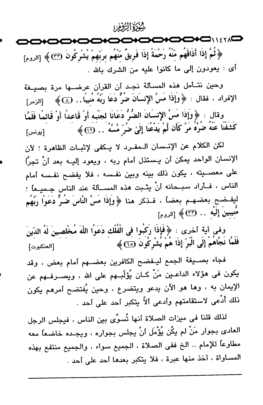 وحين نتأمل هذه المسألة نجد أن القرآن عرضها مرة بصيغة الإفراد، فقال: {وَإِذَا مَسَّ الإنسان ضُرٌّ دَعَا رَبَّهُ مُنِيباً ... .} [الزمر: 8] .