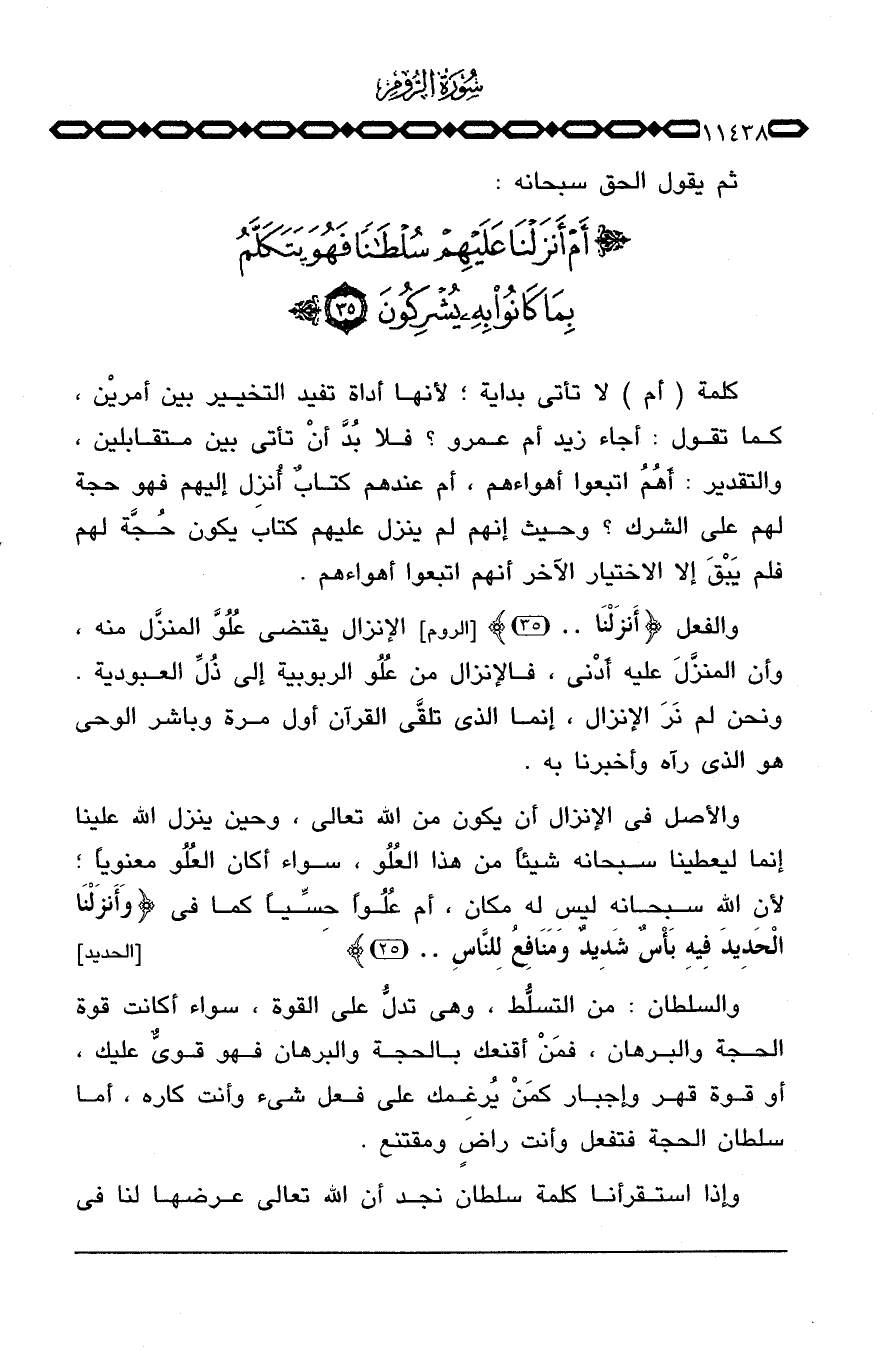 ثم يقول الحق سبحانه: {أَمْ أَنزَلْنَا عَلَيْهِمْ سُلْطَاناً ... } .