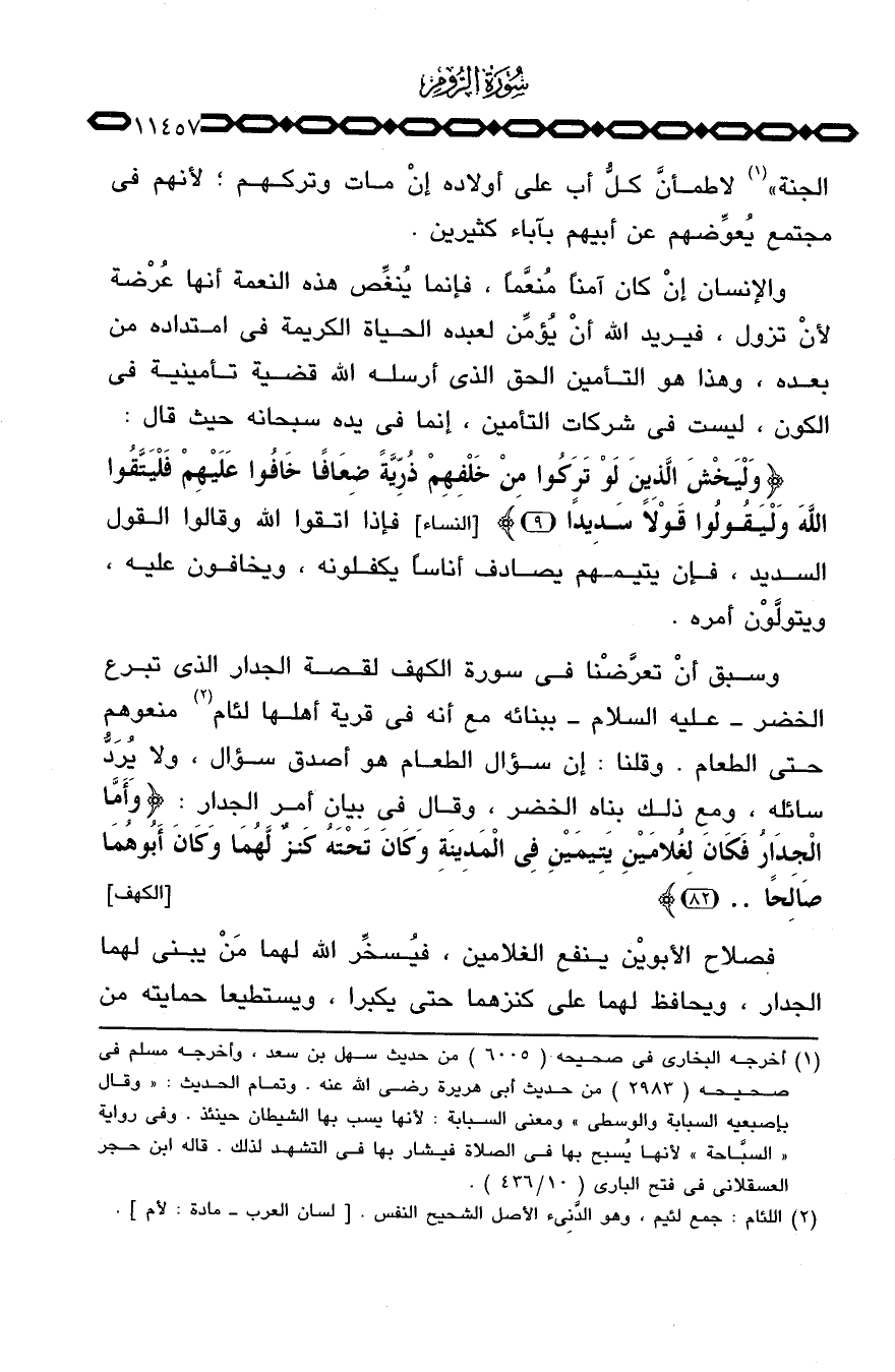 الجنة» لاطمأنَّ كلُّ أب على أولاده إنْ مات وتركهم؛ لأنهم في مجتمع يُعوضهم عن أبيهم بآباء كثيرين.