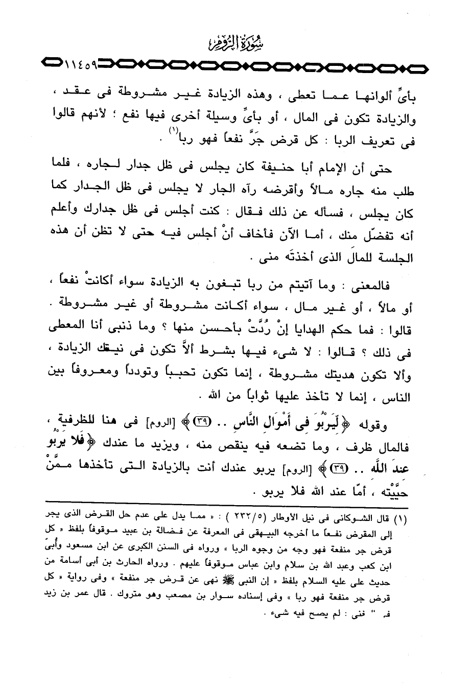 فالمعنى: وما آتيتم من ربا تبغون به الزيادة سواء أكانتْ نفعاً، أو مالاً، أو غير مال، سواء أكانت مشروطة أو غير مشروطة. قالوا: فما حكم الهدايا إنْ رُدَّتْ بأحسن منها؟ وما ذنبي أنا المعطي في ذلك؟ قالوا: لا شيء فيها بشرط ألاَّ تكون في نيتك الزيادة، وألا تكون هديتك مشروطة، إنما تكون تحبباً وتودداً ومعروفاً بين الناس، إنما لا تأخذ عليها ثواباً من الله.