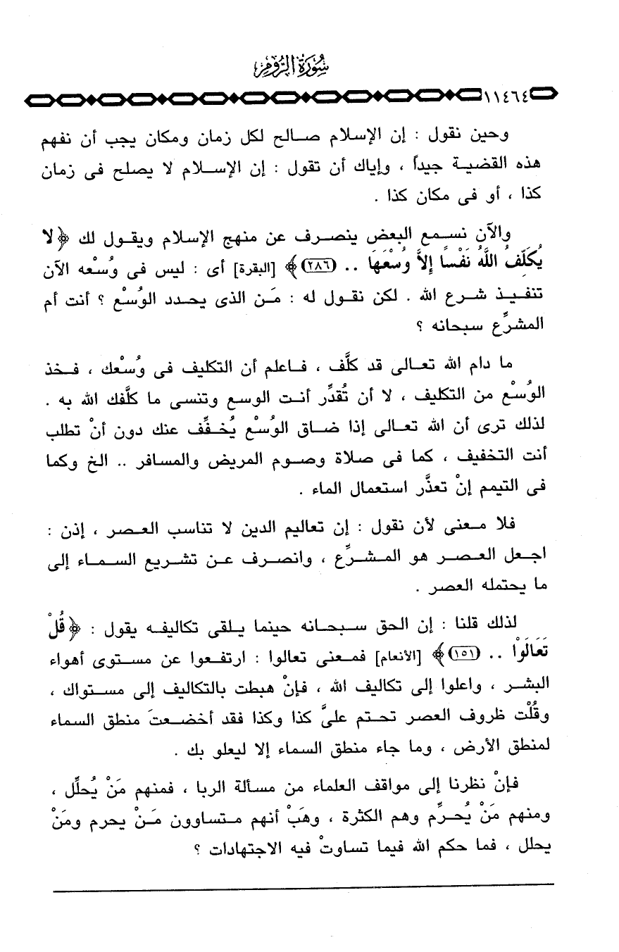 وحين نقول: إن الإسلام صالح لكل زمان ومكان يجب أن نفهم هذه القضية جيداً، وإياك أن تقول: إن الإسلام لا يصلح في زمان كذا، أو في مكان كذا.