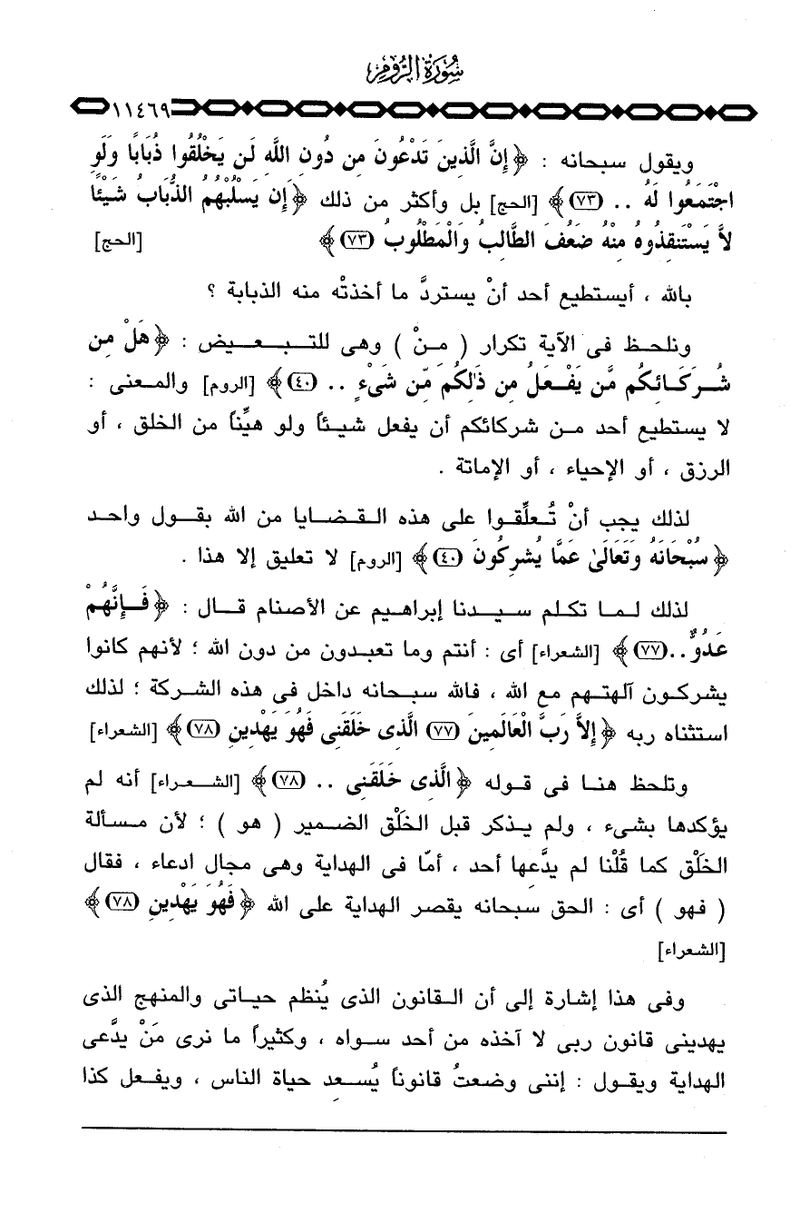 ويقول سبحانه: {إِنَّ الذين تَدْعُونَ مِن دُونِ الله لَن يَخْلُقُواْ ذُبَاباً وَلَوِ اجتمعوا لَهُ ... } [الحج: 73] بل وأكثر من ذلك