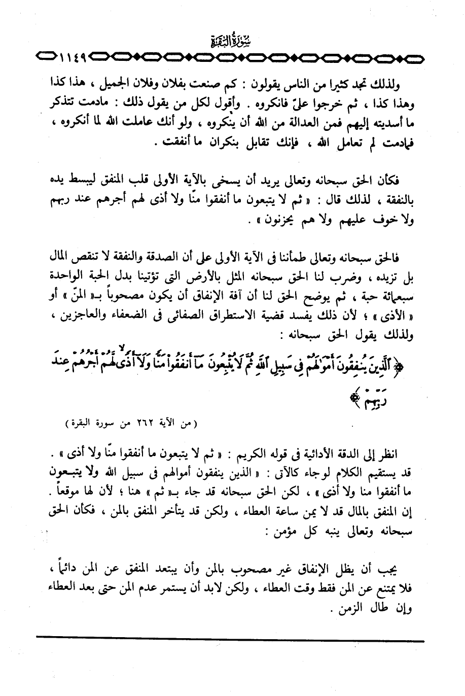 {الذين يُنْفِقُونَ أَمْوَالَهُمْ فِي سَبِيلِ الله ثُمَّ لاَ يُتْبِعُونَ مَآ أَنْفَقُواُ مَنّاً وَلاَ أَذًى لَّهُمْ أَجْرُهُمْ عِنْدَ رَبِّهِمْ} [البقرة: 262]