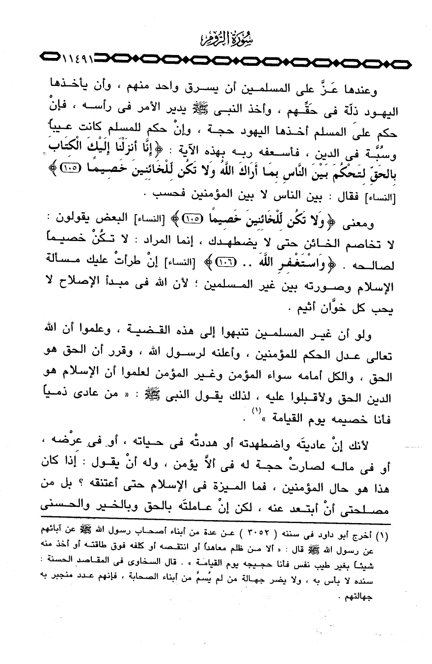ولو أن غير المسلمين تنبهوا إلى هذه القضية، وعلموا أن الله تعالى عدل الحكم للمؤمنين، وأعلنه لرسول الله، وقرر أن الحق هو الحق، والكل أمامه سواء المؤمن وغير المؤمن لعلموا أن الإسلام هو الدين الحق ولأقبلوا عليه، لذلك يقول النبي صَلَّى اللَّهُ عَلَيْهِ وَسَلَّم َ: «من عادى ذمياً فأنا خصيمه يوم القيامة» .