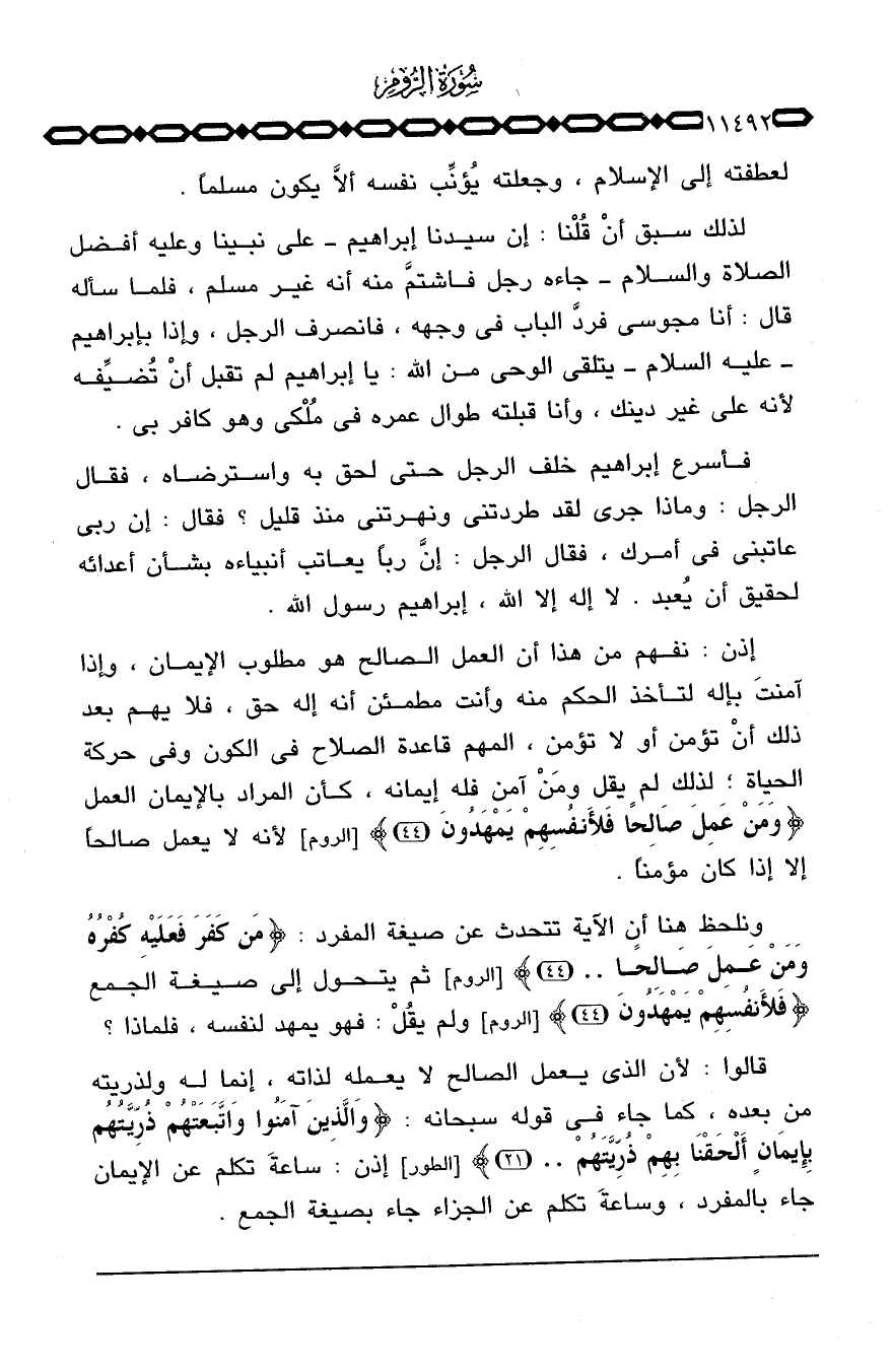 ونلحظ هنا أن الآية تتحدث عن صيغة المفرد: {مَن كَفَرَ فَعَلَيْهِ كُفْرُهُ وَمَنْ عَمِلَ صَالِحاً ... } [الروم: 44] ثم يتحول إلى صيغة الجمع {فَلأَنفُسِهِمْ يَمْهَدُونَ} [الروم: 44] ولم يقُلْ: فهو يمهد لنفسه، فلماذا؟