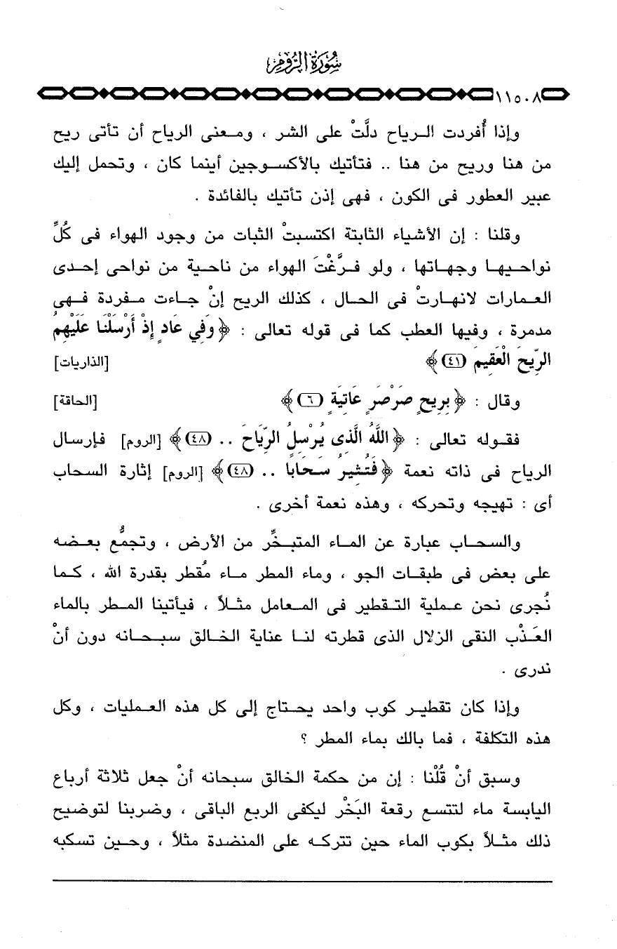 وقلنا: إن الأشياء الثابتة اكتسبتْ الثبات من وجود الهواء في كُلِّ نواحيها وجهاتها، ولو فرَّغْتَ الهواء من ناحية من نواحي إحدى العمارات لانهارتْ في الحال، كذلك الريح إنْ جاءت مفردة فهي مدمرة، وفيها العطب كما في قوله تعالى: {وَفِي عَادٍ إِذْ أَرْسَلْنَا عَلَيْهِمُ الريح العقيم} [الذاريات: 41] .
