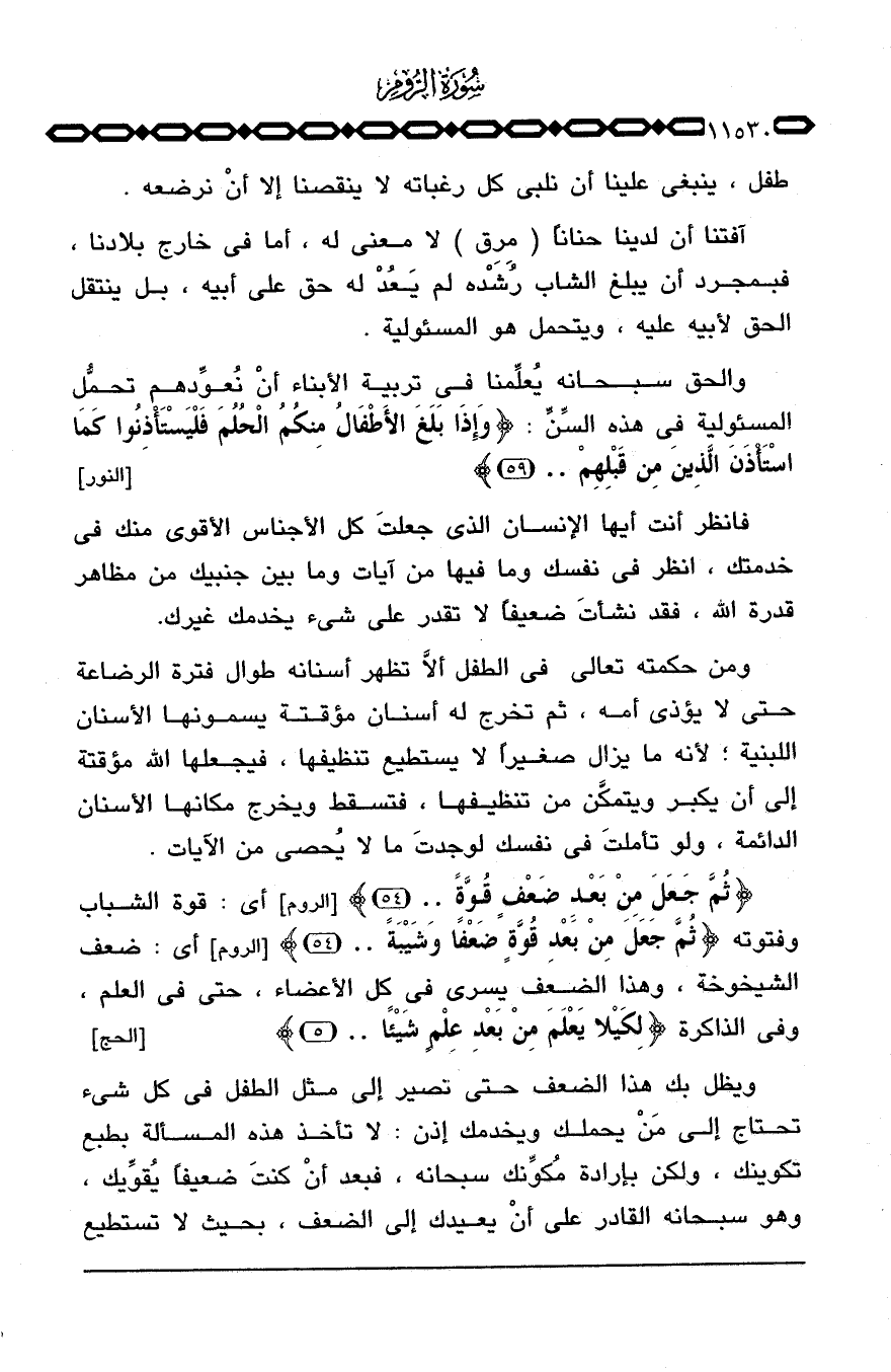 آفتنا أن لدينا حناناً (مرق) لا معنى له، أما في خارج بلادنا، فمبجرد أن يبلغ الشاب رُشَدْه لم يَعُدْ له حق على أبيه، بل ينتقل الحق لأبيه عليه، ويتحمل هو المسئولية.