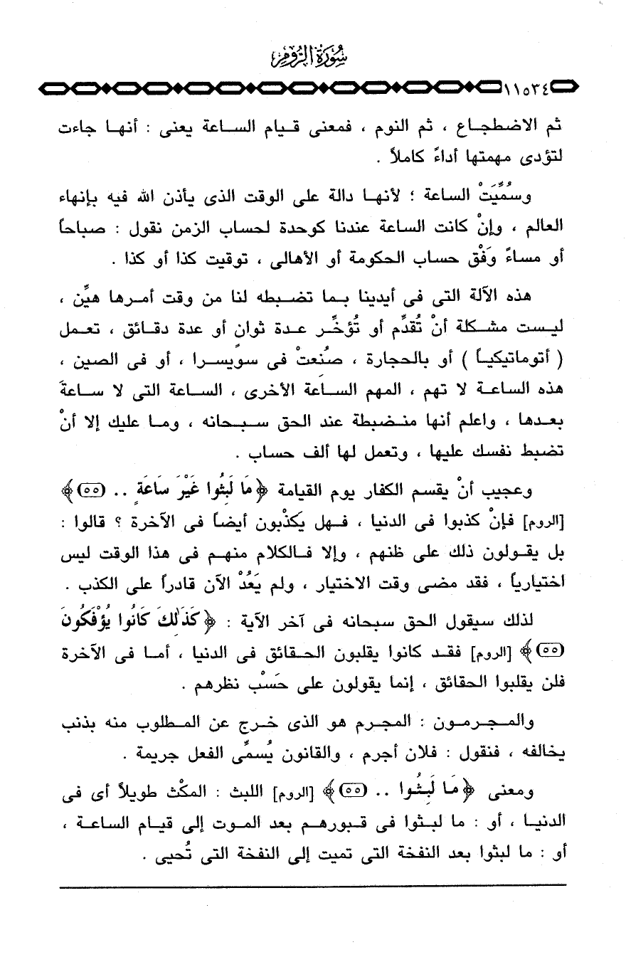 وسُمِّيَتْ الساعة؛ لأنها دالة على الوقت الذي يأذن الله فيه بإنهاء العالم، وإنْ كانت الساعة عندنا كوحدة الحساب الزمن نقول: صباحاً أو مساءً وَفْق حساب الحكومة أو الأهالي، توقيت كذا أو كذا.