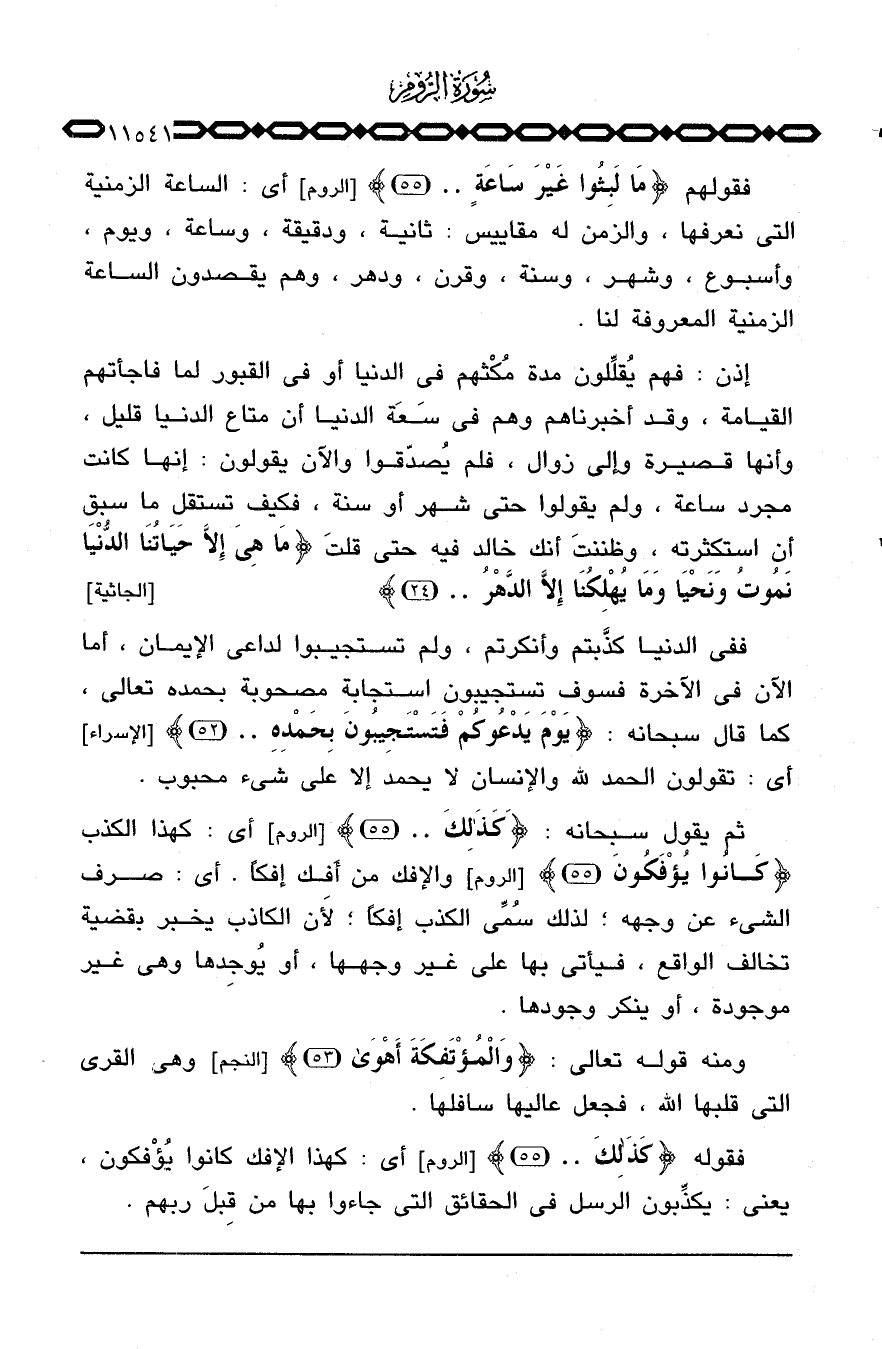 ثم يقول سبحانه: {كَذَلِكَ ... } [الروم: 55] أي: كهذا الكذب {كَانُواْ يُؤْفَكُونَ} [الروم: 55] والإفك من أَفك إفكاً، أي: صرف الشيء عن وجهه؛ لذلك سُمِّي الكذب إفكاً؛ لأن الكاذب يخبر بقضية تخالف الواقع، فيأتي بها على غير وجهها، أو يُوجِدها وهي غير موجودة، أو ينكر وجودها.