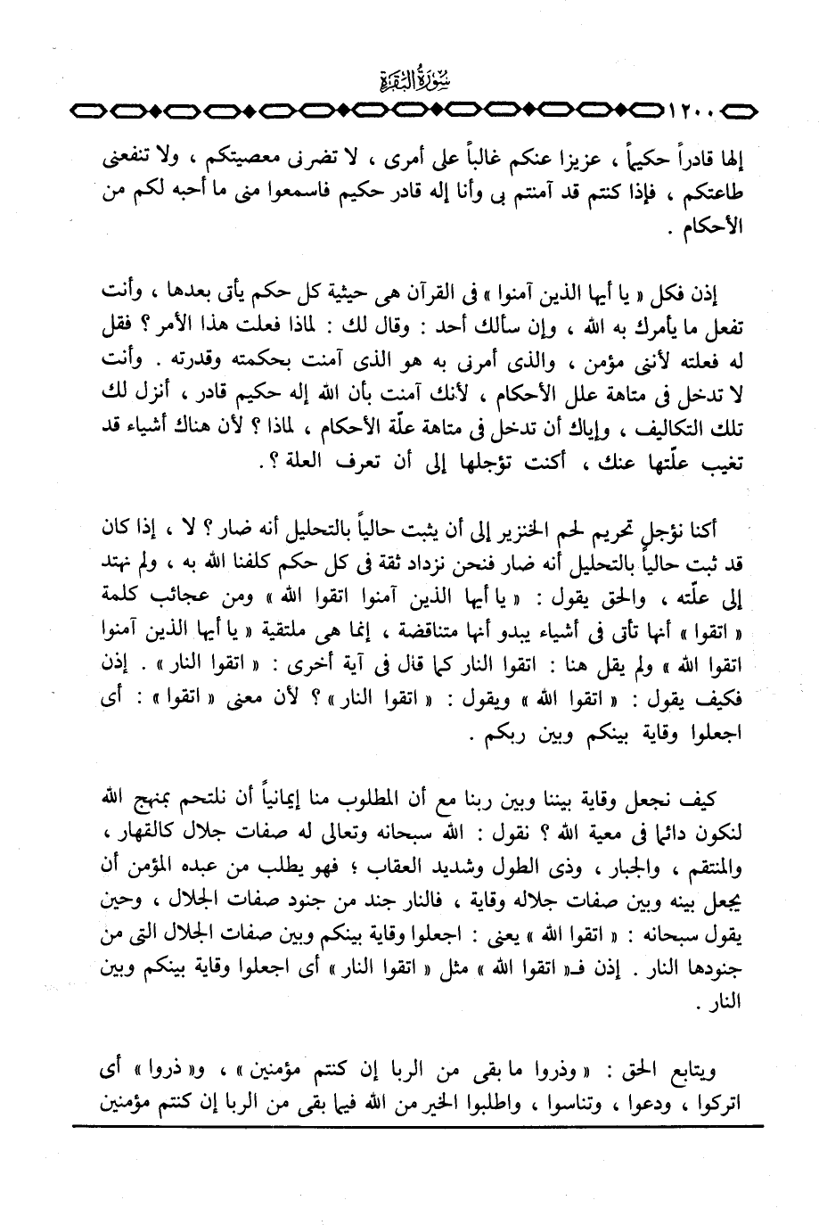 إذن فكل {ياأيها الذين آمَنُواْ} في القرآن هي حيثية كل حكم يأتي بعدها، وأنت تفعل ما يأمرك به الله، وإن سألك أحد: وقال لك: لماذا فعلت هذا الأمر؟ فقل له فعلته لأني مؤمن، والذي أمرني به هو الذي آمنت بحكمته وقدرته. وأنت لا تدخل في متاهة علل الأحكام، لأنك آمنت بأن الله إله حكيم قادر، أنزل لك تلك التكاليف، وإياك أن تدخل في متاهة علة الأحكام، لماذا؟ لأن هناك أشياء قد تغيب علّتها عنك، أكنت تؤجلها إلى أن تعرف العلة؟ .