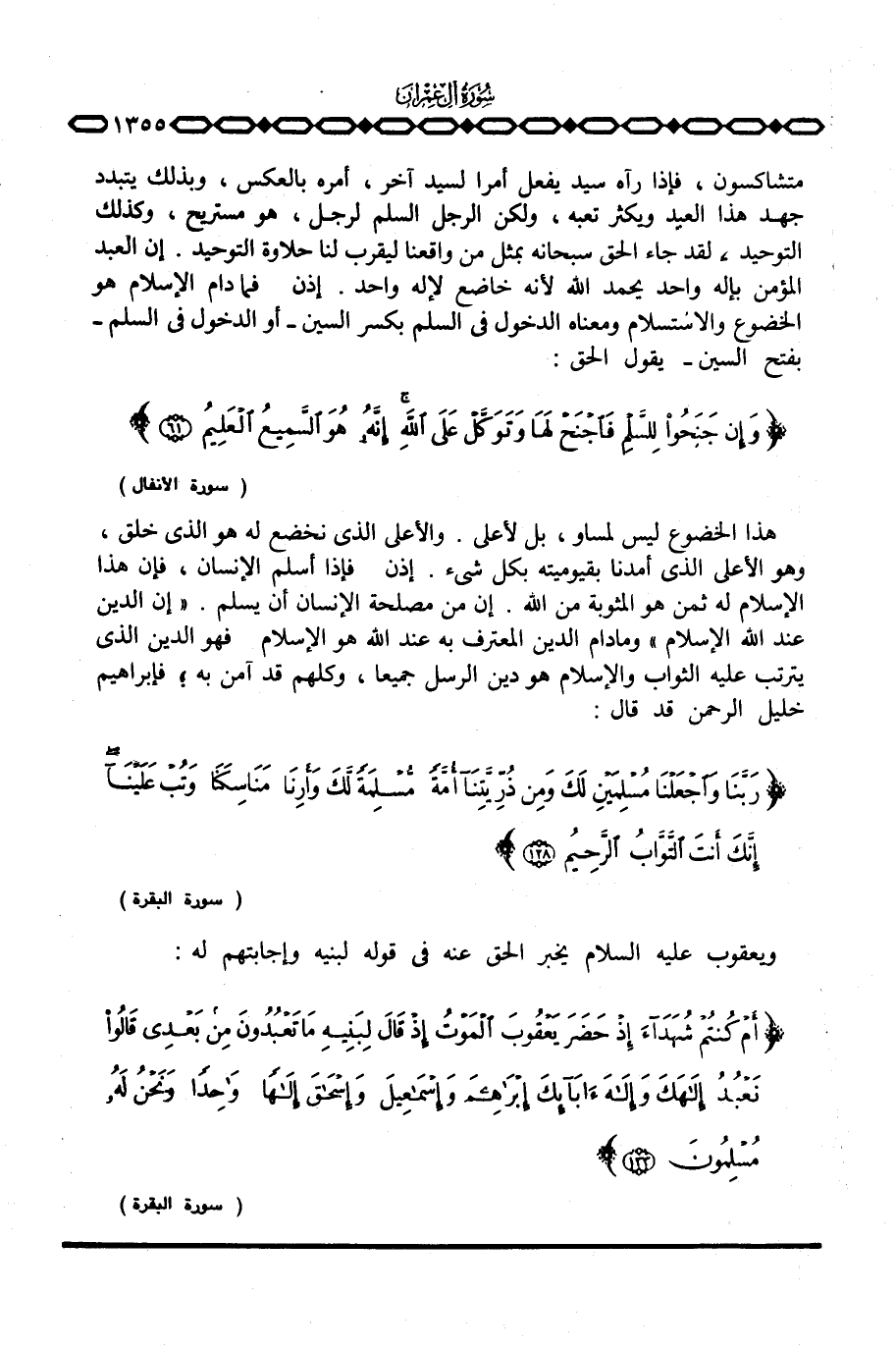 إذن فإذا أسلم الإنسان، فإن هذا الإسلام له ثمن هو المثوبة من الله. إن من مصلحة الإنسان أن يسلم. {إِنَّ الدِّينَ عِندَ الله الإسلام} وما دام الدين المعترف به عند الله هو الإسلام فهو الدين الذي يترتب عليه الثواب والإسلام هو دين الرسل جميعا، وكلهم قد آمن به؛ فإبراهيم خليل الرحمن قد قال: {رَبَّنَا واجعلنا مُسْلِمَيْنِ لَكَ وَمِن ذُرِّيَّتِنَآ أُمَّةً مُّسْلِمَةً لَّكَ وَأَرِنَا مَنَاسِكَنَا وَتُبْ عَلَيْنَآ إِنَّكَ أَنتَ التواب الرحيم} [البقرة: 128] .