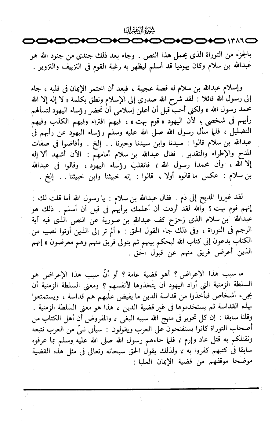 بالجزء من التوراة الذي يحمل هذا النص. وجاء بعد ذلك جندي من جنود الله هو عبد الله بن سلام وكان يهوديا قد أسلم ليظهر به رغبة القوم في التزييف والتزوير.