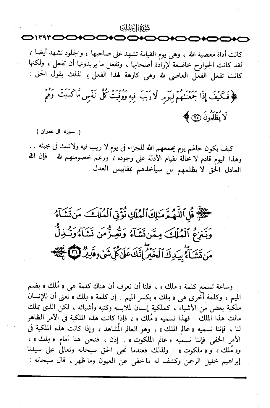 وساعة تسمع كلمة «ملك» ، فلنا أن نعرف أن هناك كلمة هي «مُلك» بضم الميم، وكلمة أخرى هي «مِلك» بكسر الميم. إن كلمة «مِلك» تعني أن للإنسان ملكية بعض من الأشياء، كملكية إنسان لملابسه وكتبه وأشيائه، لكن الذي يملك مالك هذا الملك فهذا تسميه «مُلك» ، فإذا كانت هذه الملكية في الأمر الظاهر لنا، فإننا نسميه «عالم الملك» ، وهو العالم المُشاهد، وإذا كانت هذه الملكية في الأمر الخفي فإننا نسميه «عالم الملكوت» . إذن، فنحن هنا أمام «مِلك» ، و «مُلك» و «ملكوت» . ولذلك فعندما تجلى الحق سبحانه وتعالى على سيدنا إبراهيم خليل الرحمن وكشف له ما خفي عن العيون وما ظهر، قال سبحانه: