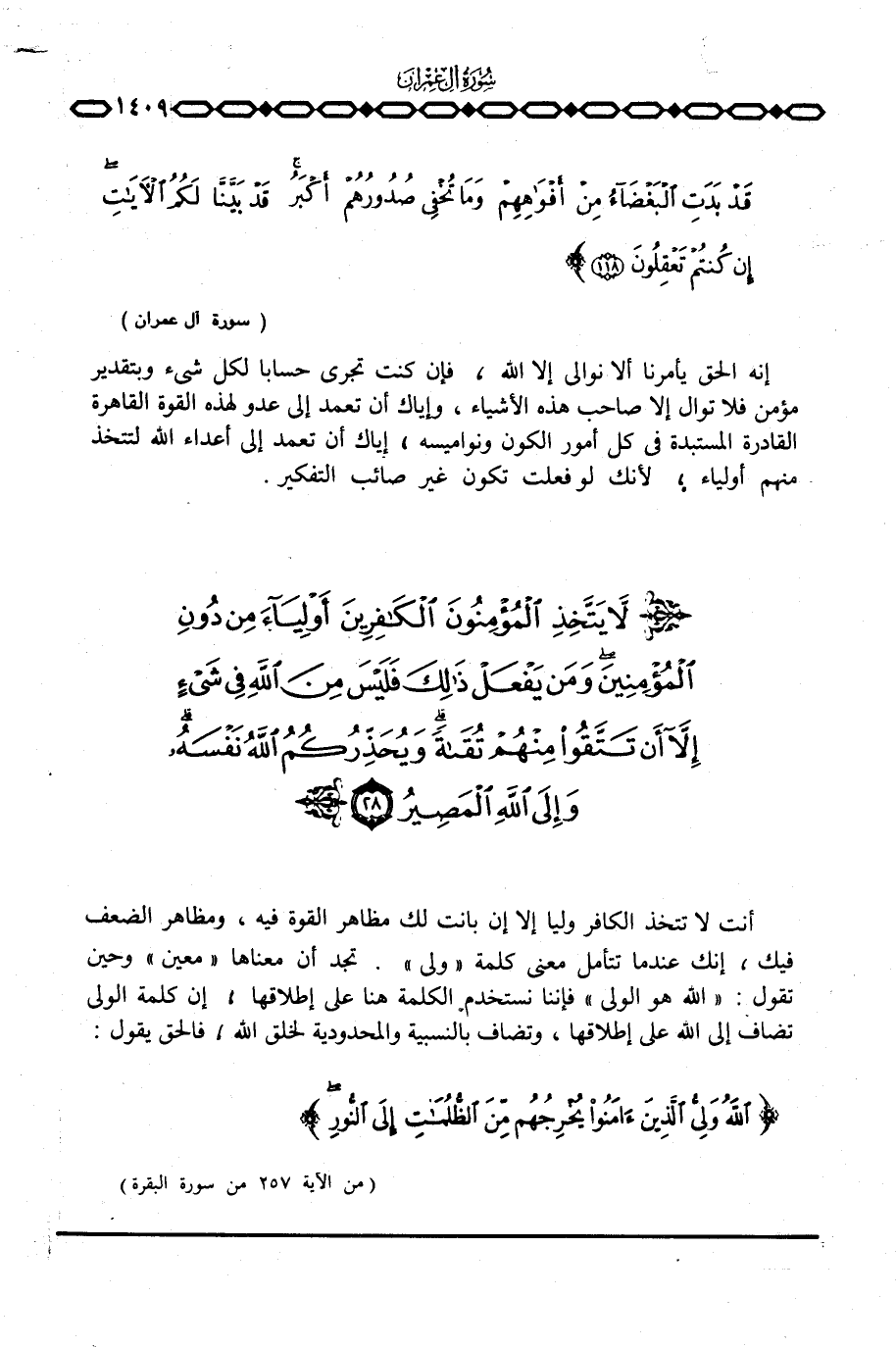 إنه الحق يأمرنا ألا نوالي إلا الله، فإن كنت تجري حسابا لكل شيء وبتقدير مؤمن فلا توال إلا صاحب هذه الأشياء، وإياك أن تعمد إلى عدو لهذه القوة القاهرة القادرة المستبده في كل امور الكون ونواميسه، إياك أن تعمد الى أعداء الله لتتخذ منهم أولياء؛ لأنك لو فعلت تكون غير صائب التفكير.
