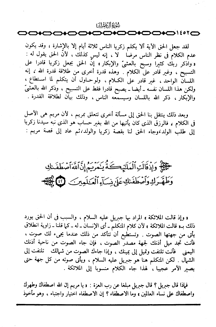 وبعد ذلك ينتقل بنا الحق إلى مسألة أخرى تتعلق بمريم، لأن مريم هي الأصل في الكلام، فالرزق الذي كان يأتيها من الله بغير حساب هو الذي نبه سيدنا زكريا إلى طلب الولد، وجاء الحق لنا بقصة زكريا والولد، ثم عاد إلى قصة مريم: {وَإِذْ قَالَتِ الملائكة يامريم إِنَّ الله اصطفاك ... }