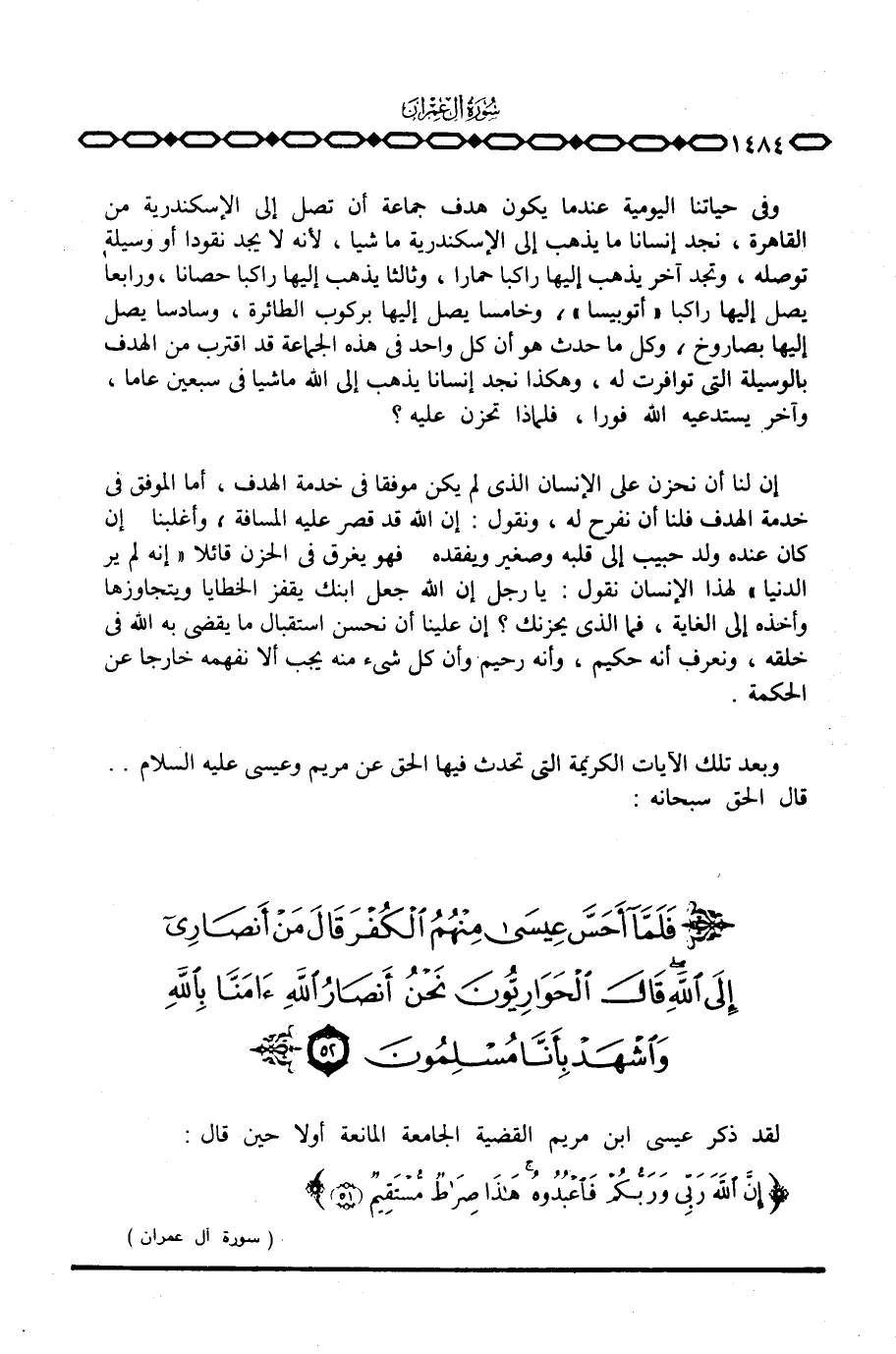 وبعد تلك الآيات الكريمة التي تحدث فيها الحق عن مريم وعيسى عليه السلام. . قال الحق سبحانه: {فَلَمَّآ أَحَسَّ عيسى مِنْهُمُ الكفر قَالَ مَنْ أنصاري إِلَى الله ... }