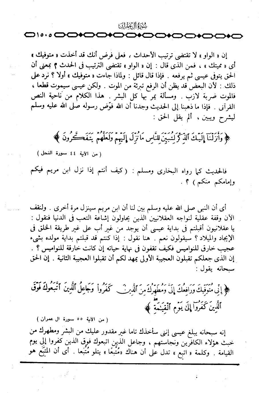 {إِنِّي مُتَوَفِّيكَ وَرَافِعُكَ إِلَيَّ وَمُطَهِّرُكَ مِنَ الذين كَفَرُواْ وَجَاعِلُ الذين اتبعوك فَوْقَ الذين كَفَرُواْ إلى يَوْمِ القيامة} [آل عمران: 55] .