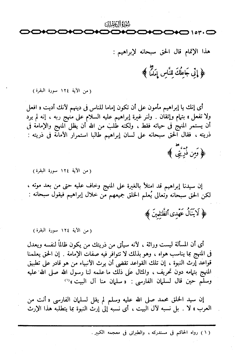 أي أن المسألة ليست وراثة، لأنه سيأتي من ذريتك من يكون ظالماً لنفسه ويعدل في المنهج بما يناسب هواه، وهو بذلك لا تتوافر فيه صفات الإمامة. إن الحق يعلمنا قواعد إرث النبوة، إن تلك القواعد تقضي أن يرث الأنبياء من هو قادر على تطبيق المنهج بتمامه دون تحريف، والمثال على ذلك ما علمه لنا رسول الله صَلَّى اللَّهُ عَلَيْهِ وَسَلَّم َ حين قال لسلمان الفارسي: «سلمان منا آل البيت» .