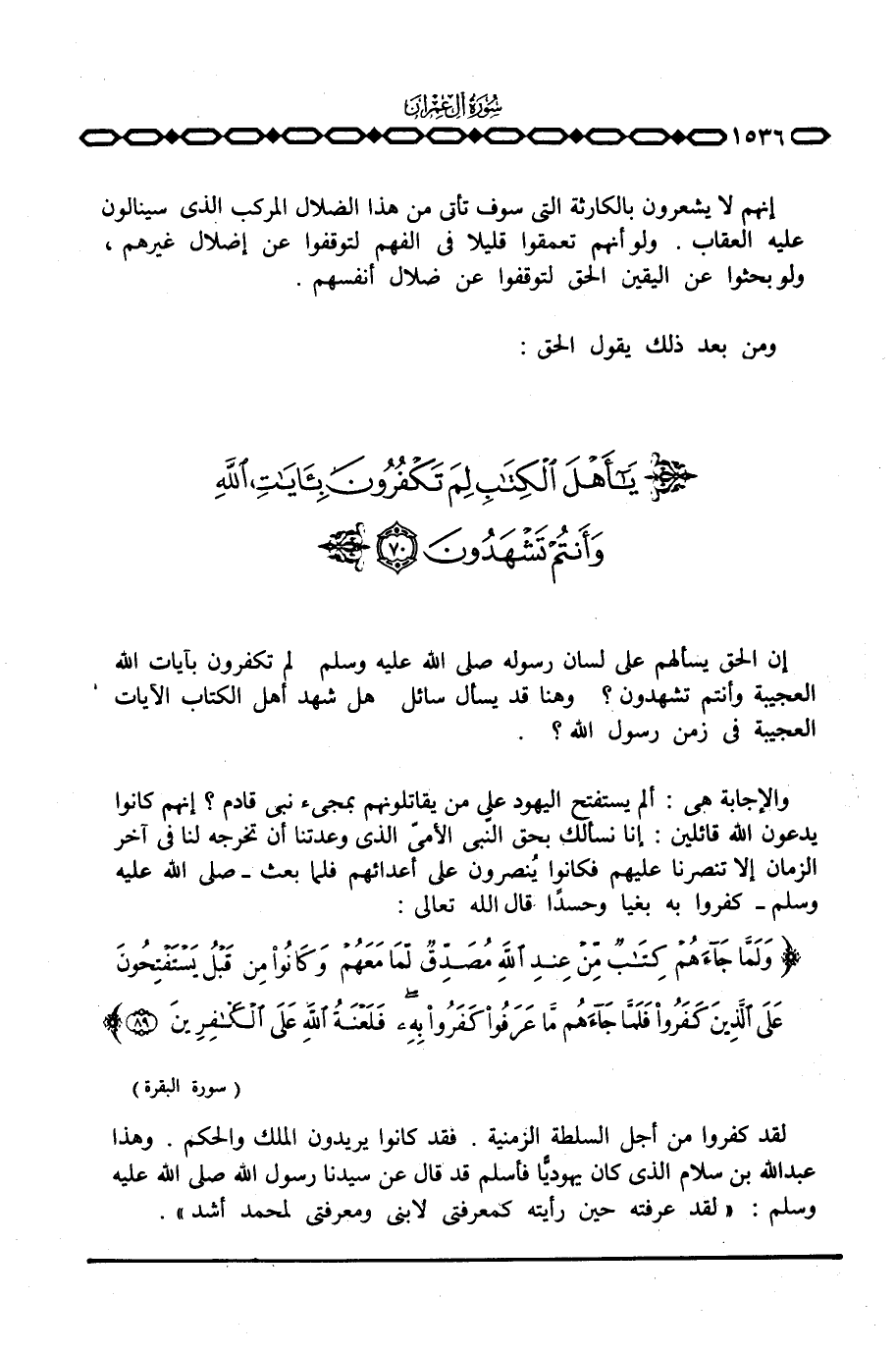 لقد كفروا من أجل السلطة الزمنية. فقد كانوا يريدون الملك والحكم. وهذا عبد الله بن سلام الذي كان يهوديّاً فأسلم قد قال عن سيدنا رسول الله صَلَّى اللَّهُ عَلَيْهِ وَسَلَّم َ: «لقد عرفته حين رأيته كمعرفتي لابني ومعرفتي لمحمد أشد» .