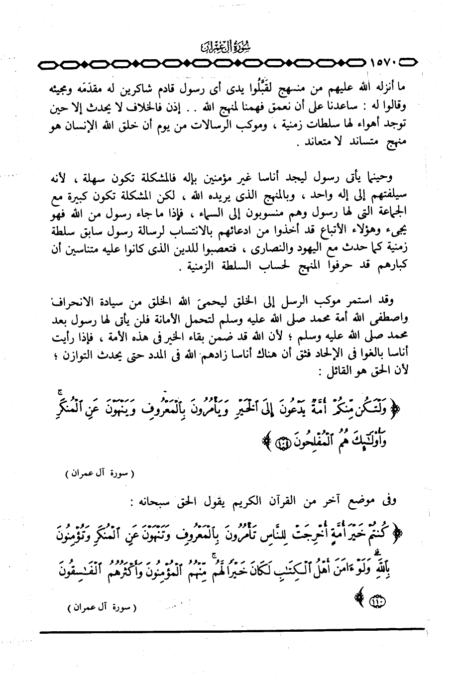 وقد استمر موكب الرسل إلى الخلق ليحمي الله الخلق من سيادة الانحراف واصطفى الله أمة محمد صَلَّى اللَّهُ عَلَيْهِ وَسَلَّم َ؛ لأن الله قد ضمن بقاء الخير في هذه الأمة، فإذا رأيت أناسا بالغوا في الإلحاد فثق أن هناك أناسا زادهم الله في المدد حتى يحدث التوازن؛ لأن الحق هو القائل: {وَلْتَكُن مِّنْكُمْ أُمَّةٌ يَدْعُونَ إِلَى الخير وَيَأْمُرُونَ بالمعروف وَيَنْهَوْنَ عَنِ المنكر وأولئك هُمُ المفلحون} [آل عمران: 104] .