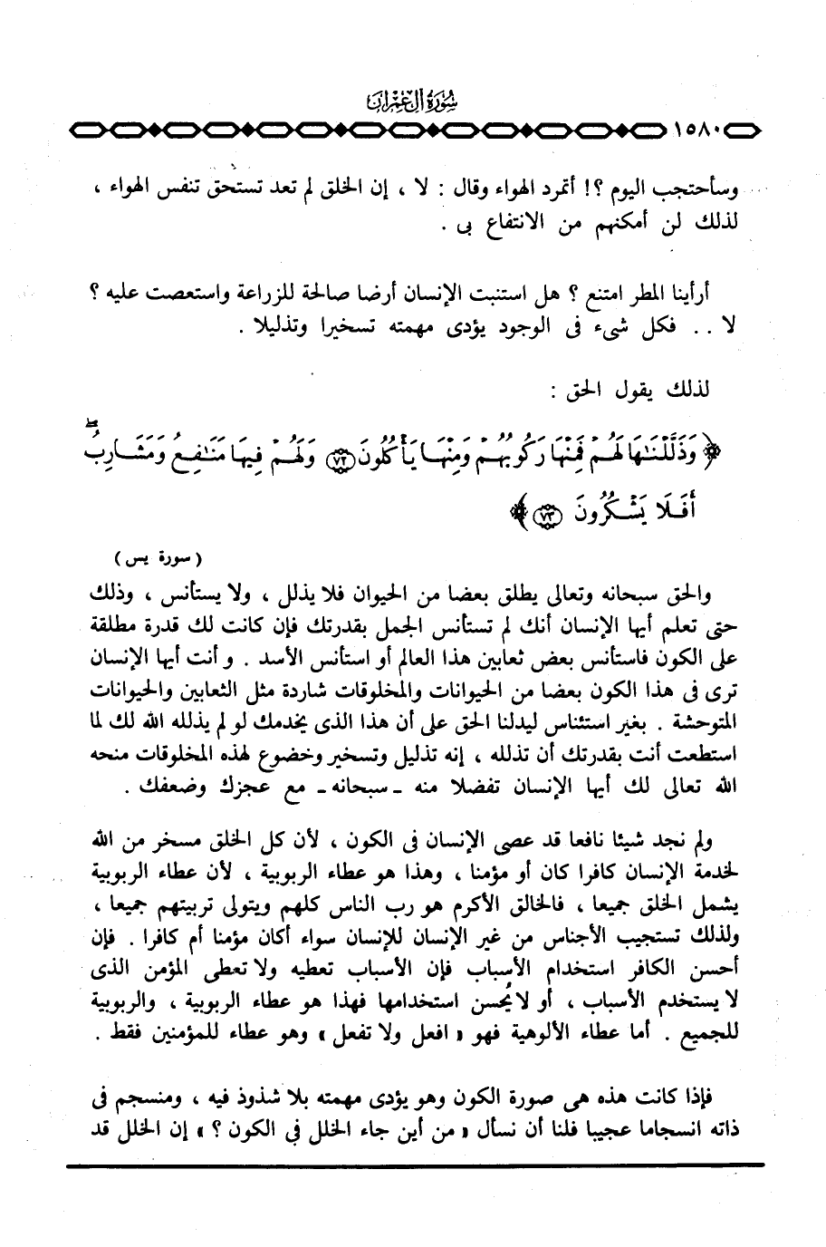 أرأينا المطر امتنع؟ هل استنبت الإنسان أرضا صالحة للزراعة واستعصت عليه؟ لا. . فكل شيء في الوجود يؤدي مهمته تسخيرا وتذليلا.