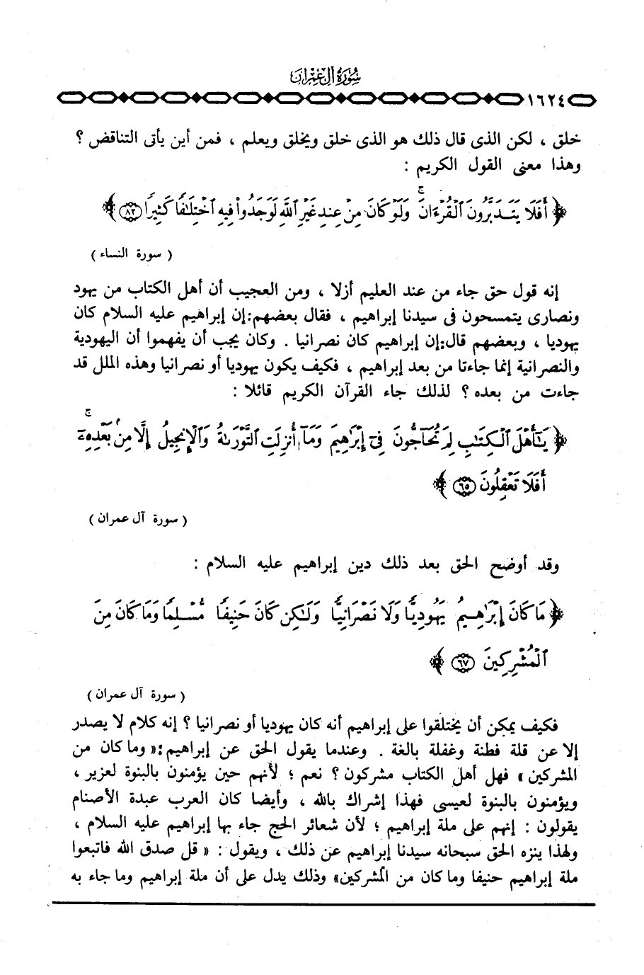 وقد أوضح الحق بعد ذلك دين إبراهيم عليه السلام: {مَا كَانَ إِبْرَاهِيمُ يَهُودِيّاً وَلاَ نَصْرَانِيّاً وَلَكِن كَانَ حَنِيفاً مُّسْلِماً وَمَا كَانَ مِنَ المشركين} [آل عمران: 67]