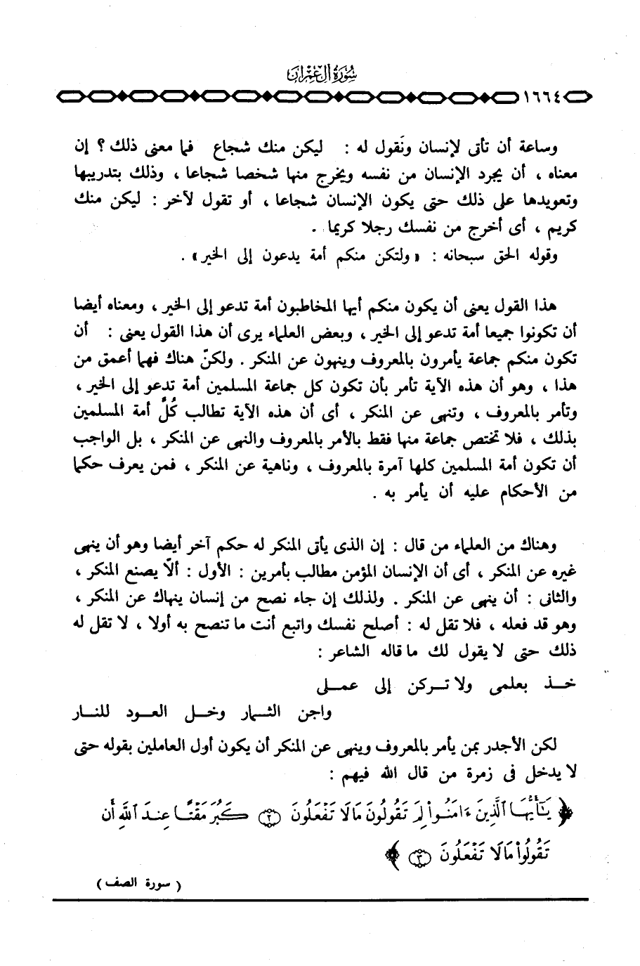 وقوله الحق سبحانه: {وَلْتَكُن مِّنْكُمْ أُمَّةٌ يَدْعُونَ إِلَى الخير} .