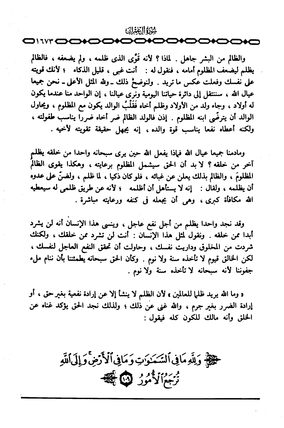 {وَمَا الله يُرِيدُ ظُلْماً لِّلْعَالَمِينَ} لأن الظلم لا ينشأ إلا عن إرادة نفعية بغير حق، أو إرادة الضرر بغير جرم، والله غني عن ذلك، ولذلك نجد الحق يؤكد غناه عن الخلق وأنه مالك للكون كله فيقول: {وَللَّهِ مَا فِي السماوات وَمَا فِي الأرض ... }