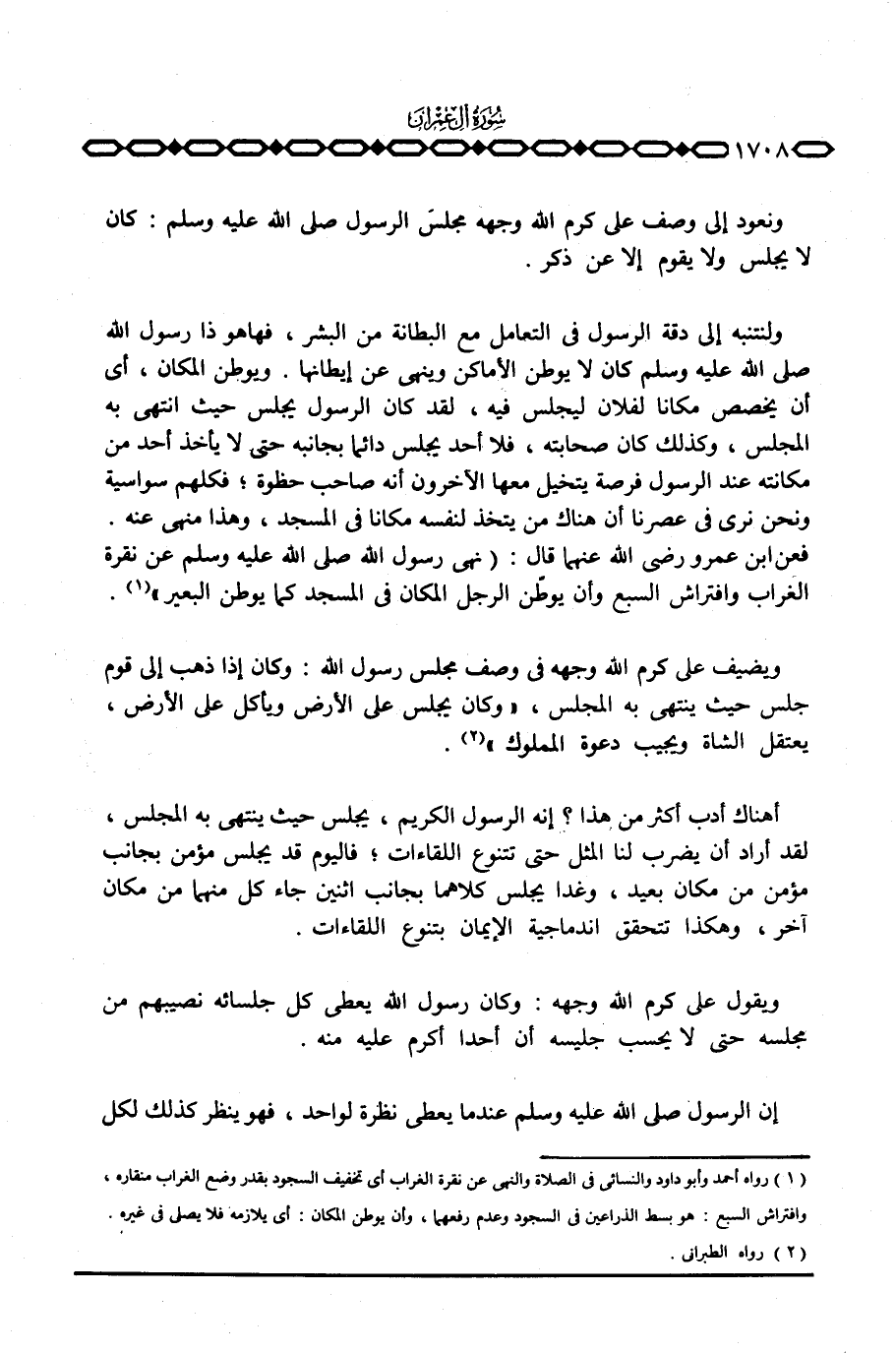 ونعود إلى وصف علي كرم الله وجهه مجلسَ الرسول صَلَّى اللَّهُ عَلَيْهِ وَسَلَّم َ: كان لا يجلس ولا يقوم إلا عن ذكر.