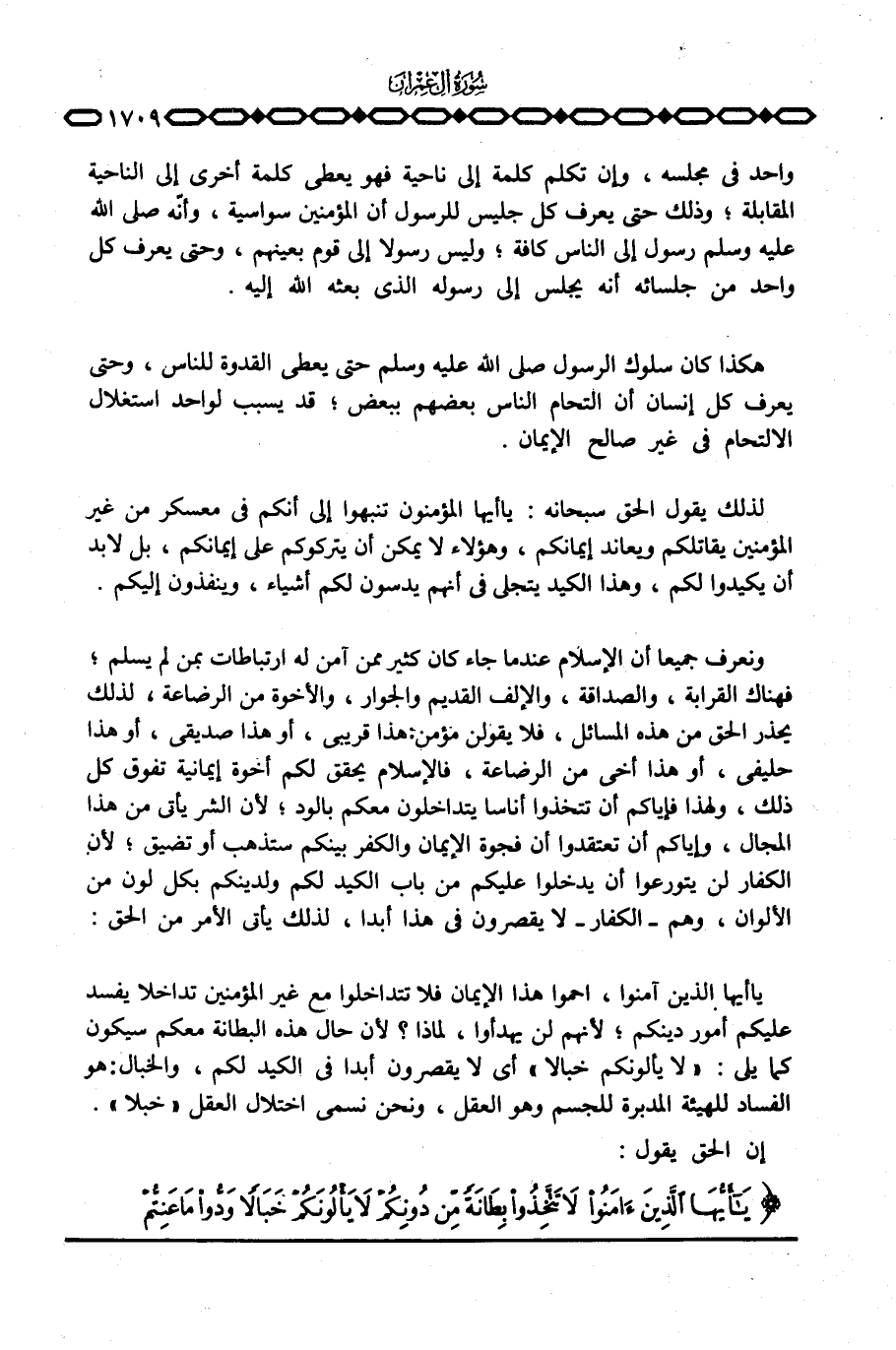 {ياأيها الذين آمَنُواْ لاَ تَتَّخِذُواْ بِطَانَةً مِّن دُونِكُمْ لاَ يَأْلُونَكُمْ خَبَالاً وَدُّواْ مَا عَنِتُّمْ