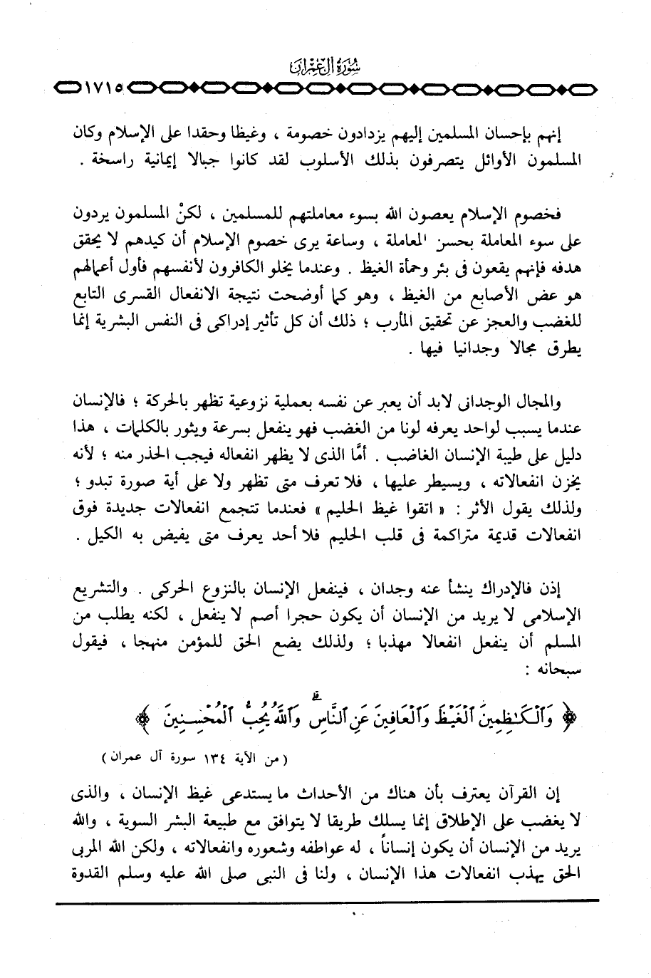 إن القرآن يعترف بأن هناك من الأحداث ما يستدعي غيظ الإنسان، والذي لا يغضب على الإطلاق إنما يسلك طريقا لا يتوافق مع طبيعة البشر السوية، والله يريد من الإنسان أن يكون إنساناً، له عواطفه وشعوره وانفعالاته، ولكن الله المربي الحق يهذب انفعالات هذا الإنسان، ولنا في النبي صَلَّى اللَّهُ عَلَيْهِ وَسَلَّم َ القدوة