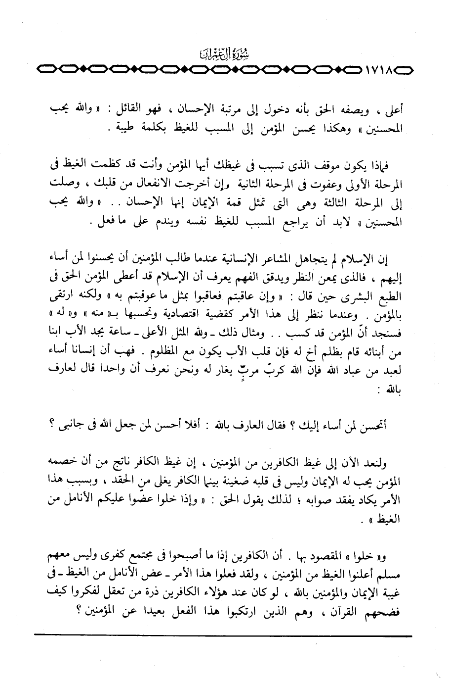 أعلى، ويصفه الحق بأنه دخول إلى مرتبة الإحسان، فهو القائل: {والله يُحِبُّ المحسنين} وهكذا يحسن المؤمن إلى المسبب للغيظ بكلمة طيبة.