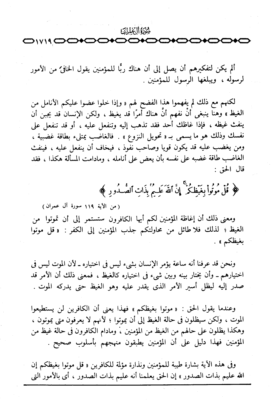 {قُلْ مُوتُواْ بِغَيْظِكُمْ إِنَّ الله عَلِيمٌ بِذَاتِ الصدور} [آل عمران: 119]