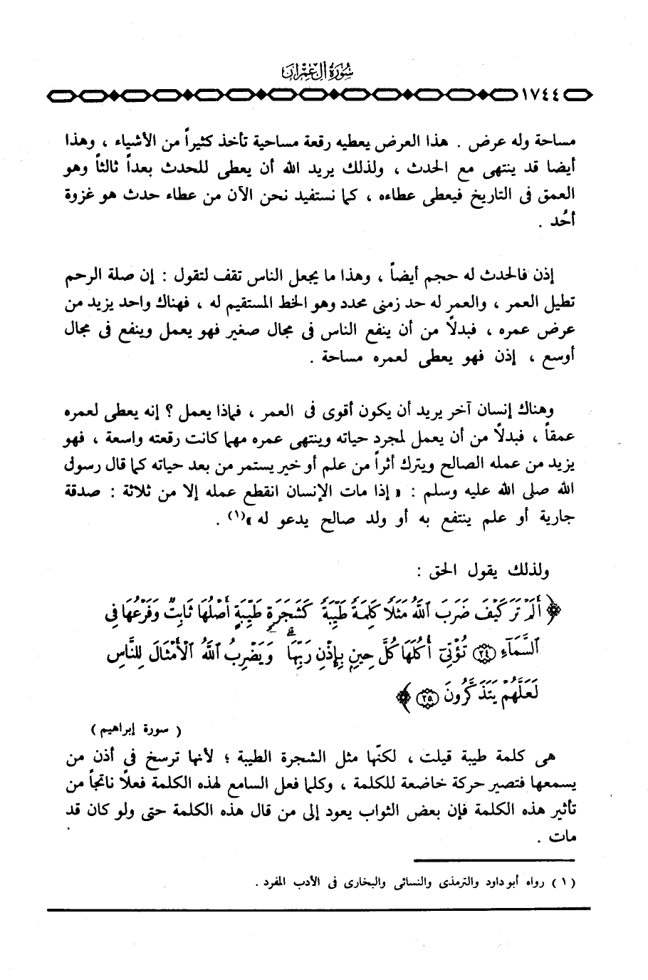 مساحة وله عرض. هذا العرض يعطيه رقعة مساحية تأخذ كثيراً من الأشياء، وهذا أيضا قد ينتهي مع الحدث، لذلك يريد الله أن يعطي للحدث بعداً ثالثاً وهو العمق في التاريخ فيعطي عطاءه، كما نستفيد نحن الآن من عطاء حدث هو غزوة أُحد.