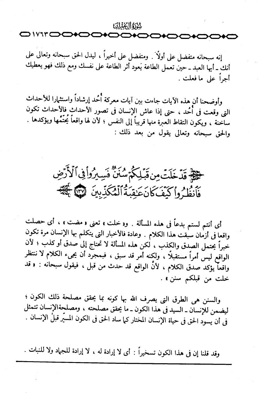 وأوضحنا أن هذه الآيات جاءت بين آيات معركة أُحُد إرشاداً واستثمارا للأحداث التي وقعت في أُحُد، حتى إذا عاش الإنسان في تصور الأحداث فالأحداث تكون ساخنة، ويكون التقاط العبرة منها قريباً إلى النفس؛ لأن واقعاً يُحتّمها ويؤكدها. والحق سبحانه وتعالى يقول من بعد ذلك: {قَدْ خَلَتْ مِن قَبْلِكُمْ سُنَنٌ فَسِيرُواْ فِي الأرض فانظروا ... }