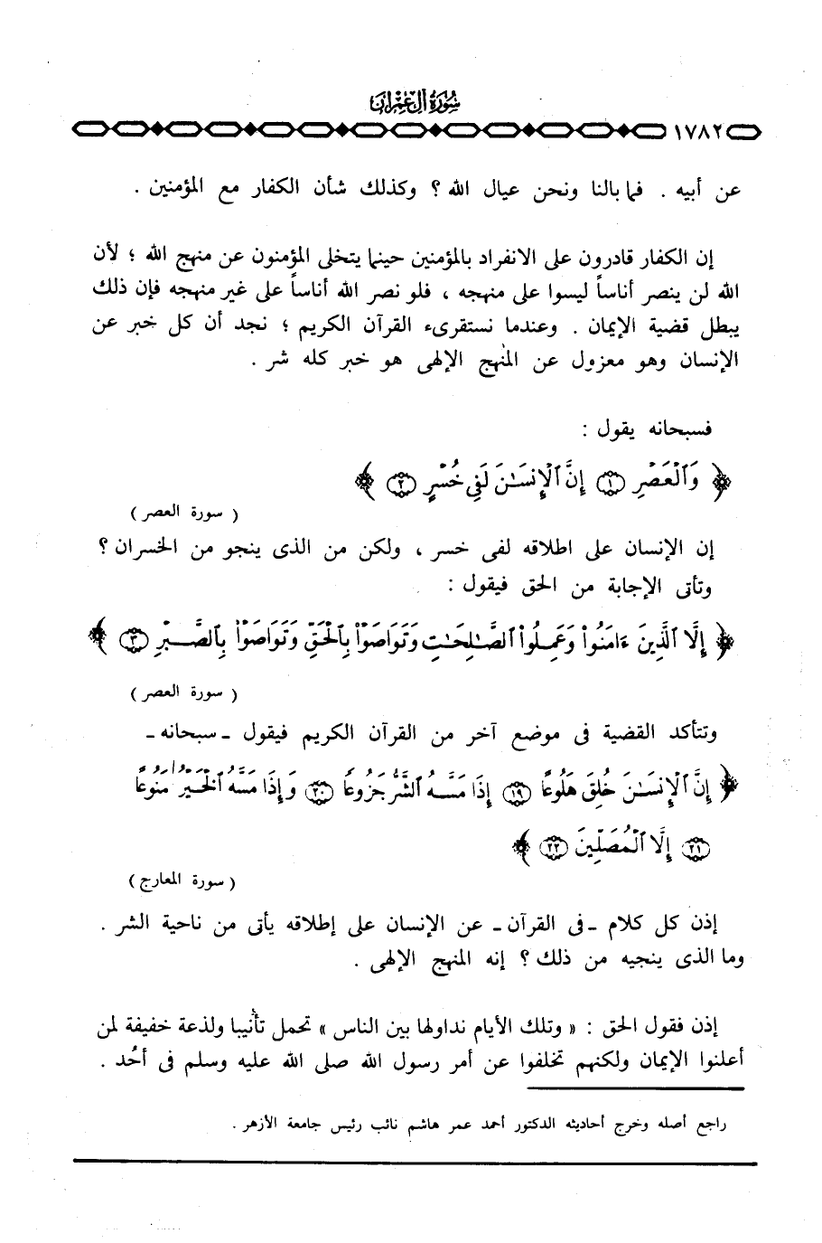إذن كل كلام - في القرآن - عن الإنسان على إطلاقه يأتي من ناحية الشر. وما الذي ينجيه من ذلك؟ إنه المنهج الإلهي.