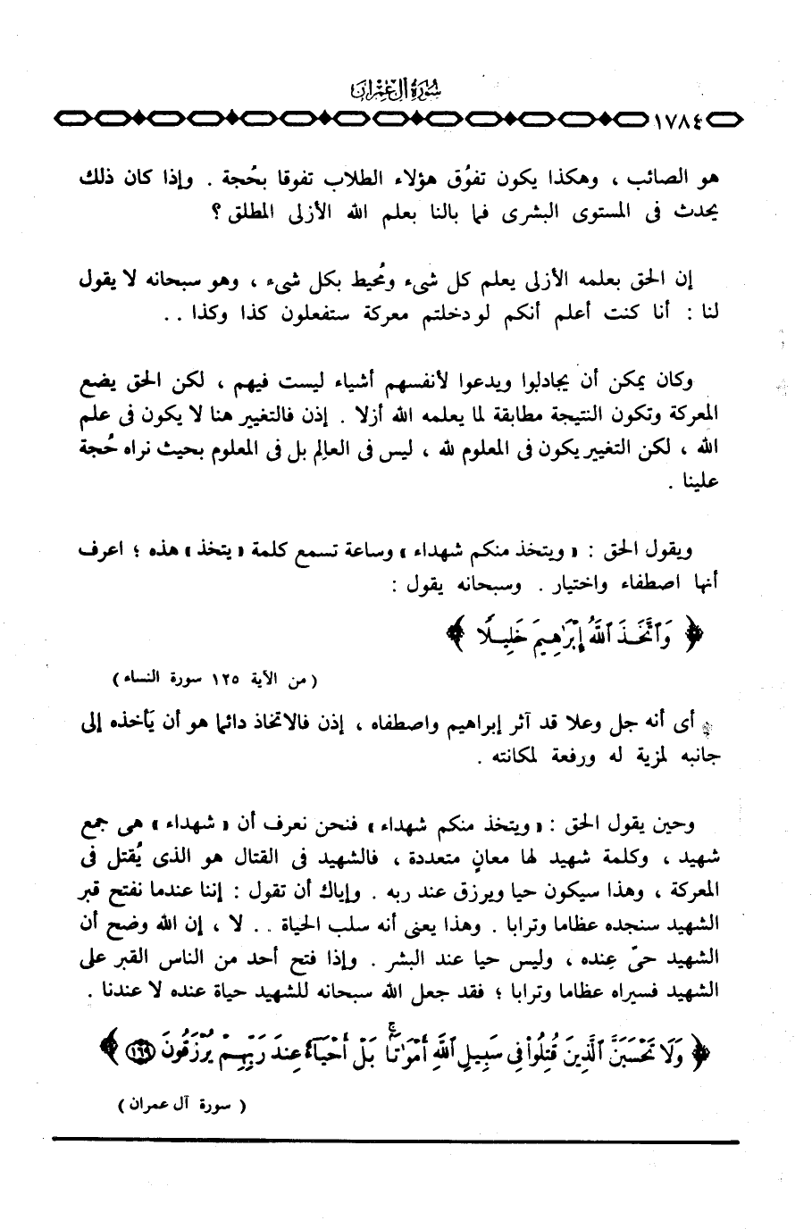 هو الصائب، وهكذا يكون تفُوق هؤلاء الطلاب تفوقا بحُجة. وإذا كان ذلك يحدث في المستوى البشري فما بالنا بعلم الله الأزلي المطلق؟