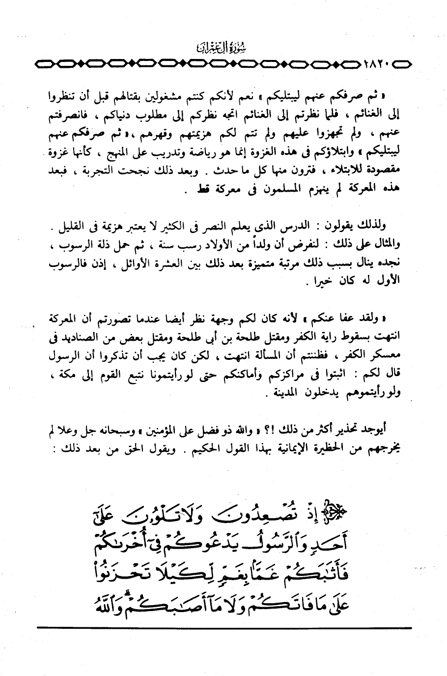 أيوجد تحذير أكثر من ذلك!؟ {والله ذُو فَضْلٍ عَلَى المؤمنين} وسبحانه جل وعلا لم يخرجهم من الحظيرة الإيمانية بهذا القول الحكيم. ويقول الحق من بعد ذلك: {إِذْ تُصْعِدُونَ وَلاَ تَلْوُونَ على أحَدٍ والرسول يَدْعُوكُمْ في أُخْرَاكُمْ ... }