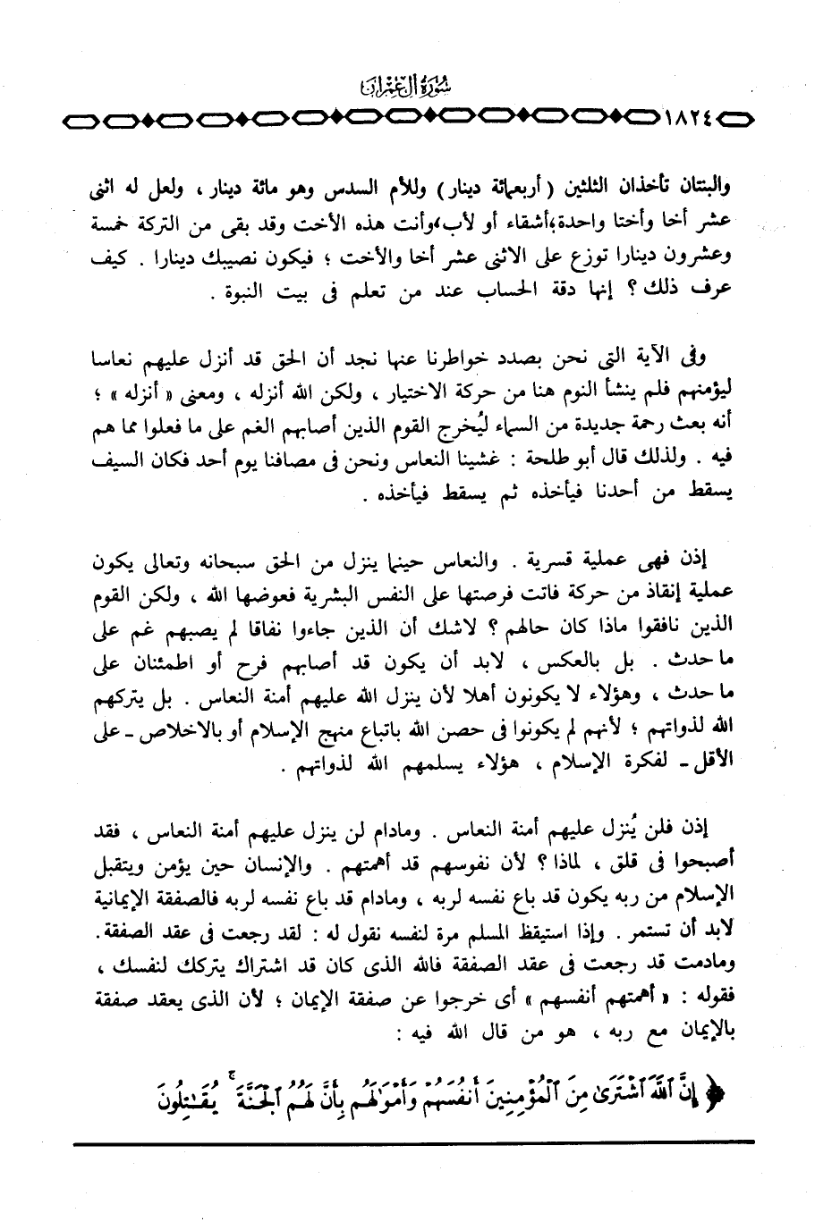 إذن فلن يُنزل عليهم أمنة النعاس. وما دام لن ينزل عليهم أمنة النعاس، فقد أصبحوا في قلق، لماذا؟ لأن نفوسهم قد أهمتهم. والإنسان حين يؤمن ويتقبل الإسلام من ربه يكون قد باع نفسه لربه، وما دام قد باع نفسه لربه فالصفقة الإيمانية لابد أن تستمر. وإذا استيقظ المسلم مرة لنفسه نقول له: لقد رجعت في عقد الصفقة. وما دمت قد رجعت في عقد الصفقة فالله الذي كان قد اشتراك يتركك لنفسك، فقوله: {أَهَمَّتْهُمْ أَنْفُسُهُمْ} أي خرجوا عن صفقة الإيمان؛ لأن الذي يعقد صفقة بالإيمان مع ربه، هو من قال الله فيه: {إِنَّ الله اشترى مِنَ المؤمنين أَنفُسَهُمْ وَأَمْوَالَهُمْ بِأَنَّ لَهُمُ الجنة يُقَاتِلُونَ