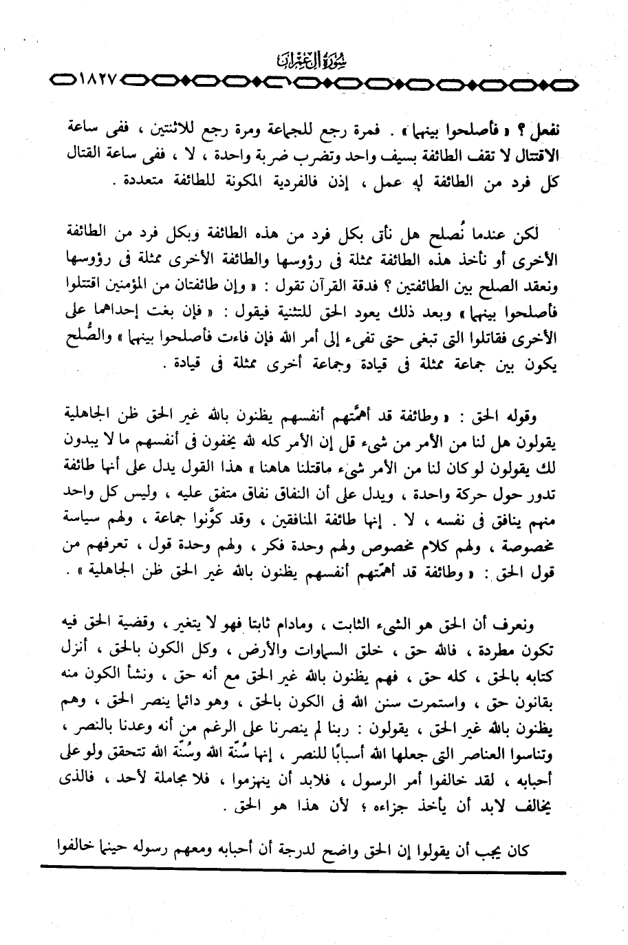 نفعل؟ {فَأَصْلِحُواْ بَيْنَهُمَا} ، فمرة رجع للجماعة ومرة رجع للاثنتين، ففي ساعة الاقتتال لا تقف الطائفة بسيف واحد وتضرب ضربة واحدة، لا، ففي ساعة القتال كل فرد من الطائفة له عمل، إذن فالفردية المكونة للطائفة متعددة.