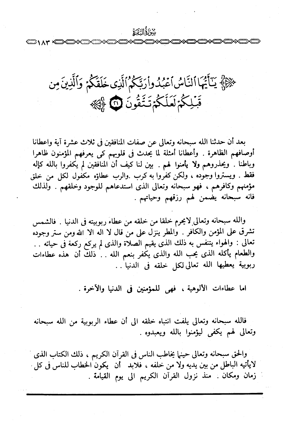 فالله سبحانه وتعالى يلفت انتباه خلقه إلى أن عطاء الربوبية من الله سبحانه وتعالى لهم يكفي ليؤمنوا بالله ويعبدوه.