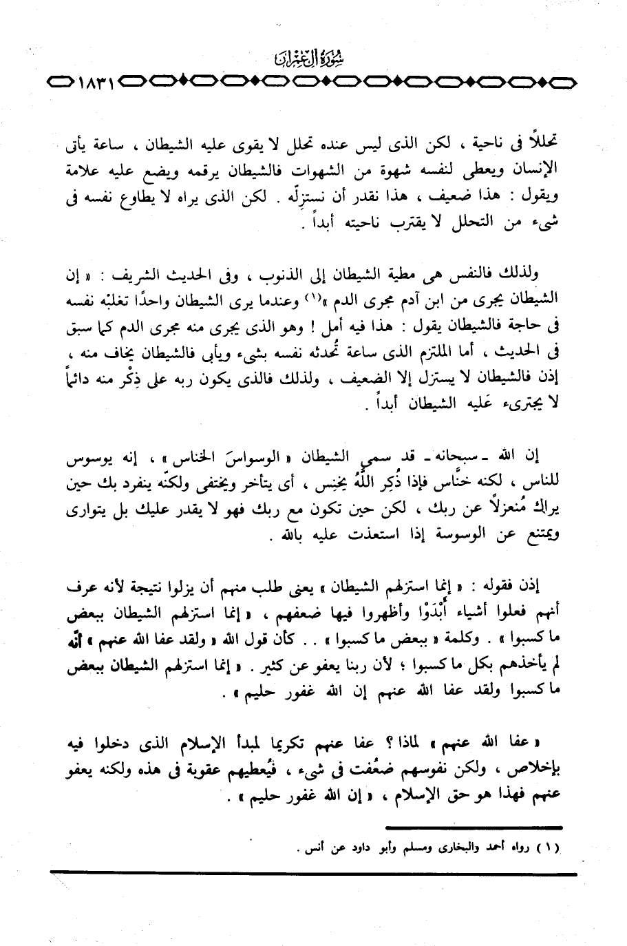 تحللاً من ناحية، لكن الذي ليس عنده تحلل لا يقوى عليه الشيطان، ساعة يأتي الإنسان ويعطي لنفسه شهوة من الشهوات فالشيطان يرقمه ويضع عليه علامة ويقول: هذا ضعيف، هذا نقدر أن نستزِلّه. لكن الذي يراه لا يطاوع نفسه في شيء من التحلل لا يقترب ناحيته أبداً.
